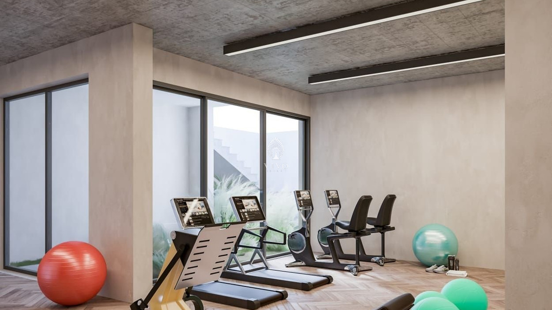 The complex consists of four separate buildings and a communal swimming pool for adults and children. The surrounding green areas will provide privacy for all residents. Parking spaces will be allocated individually for all residents in the complex within the development and also a gym.