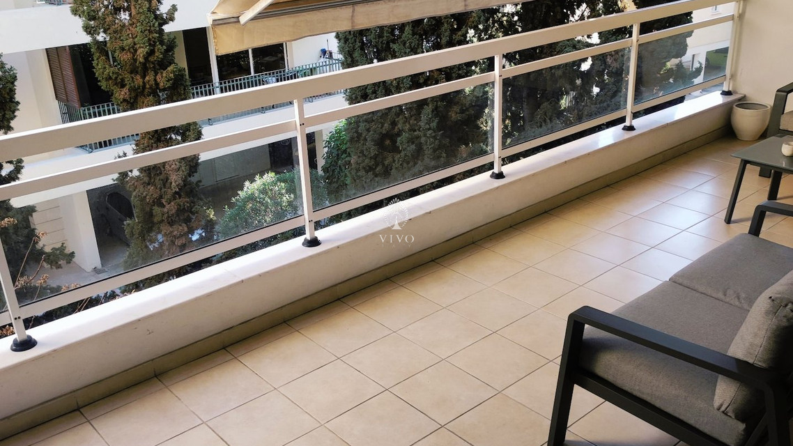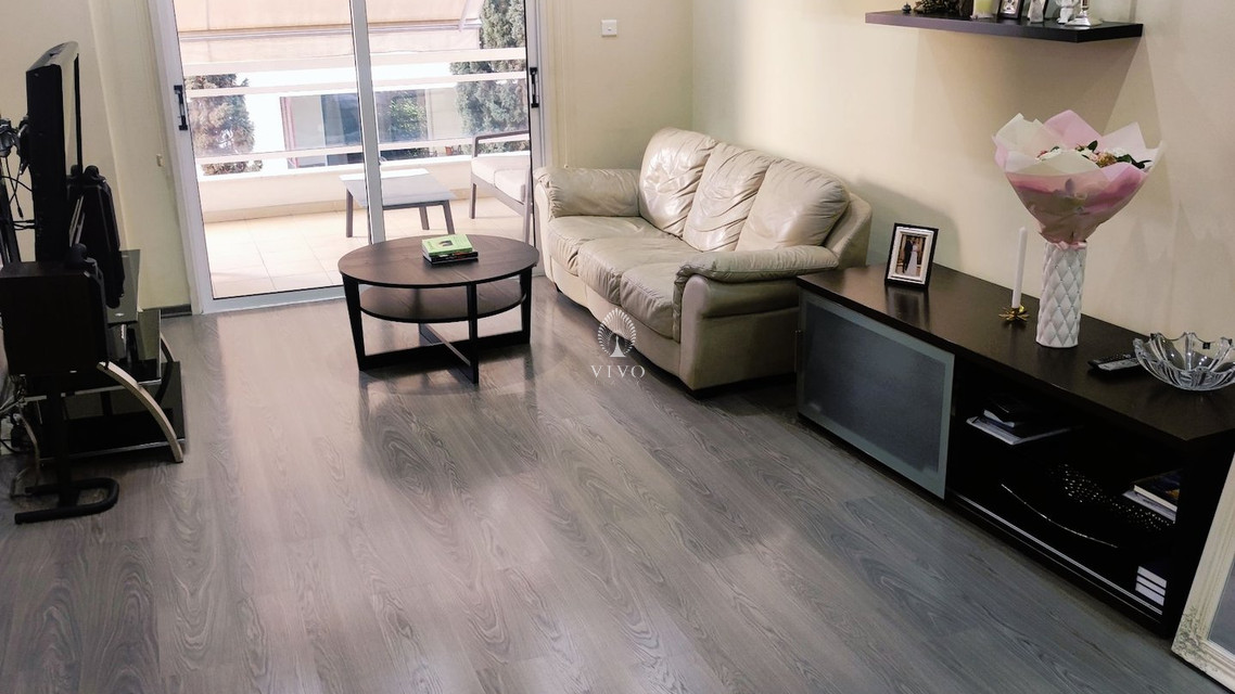 The property is situated on the second floor of a four floor residential building and consists of a spacious living room which leads to the front covered veranda, semi open plan kitchen with a large dining area, guest W/C, three very big bedrooms one of which with en suite shower and walk-in closet and the family bathroom. A/c units, c/h, large storage room and covered parking.