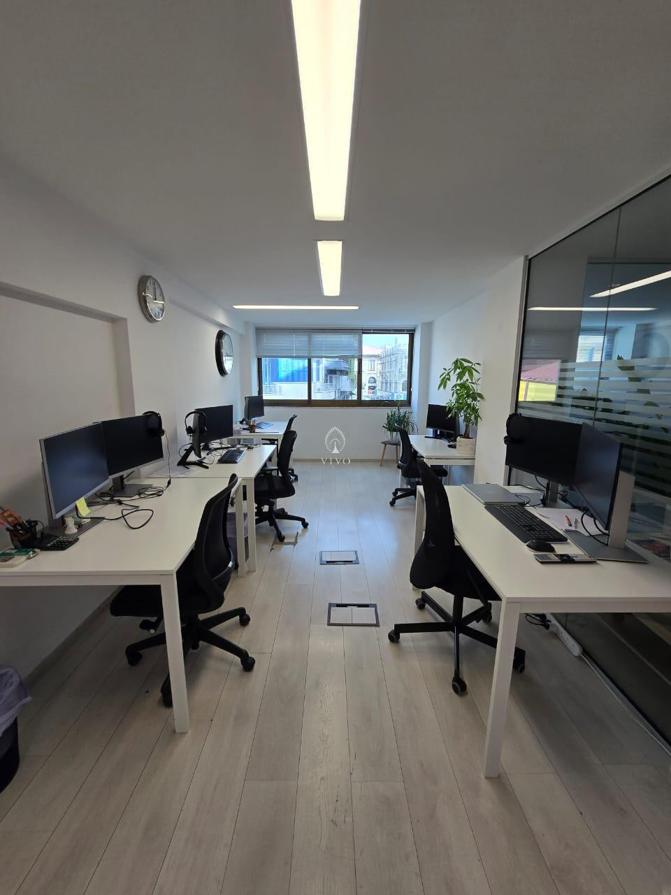 Closed offices, Connected to electric mains, Double glazing, Easy access to main roads, Excellent condition, Glass partitions, Heart of city center, Internet, Kitchenette, Laminate flooring, Lounge area, Main road, Meeting room, Municipal water/sewage, Near public transport