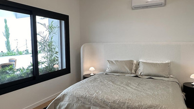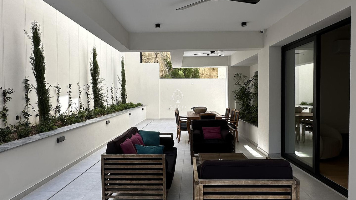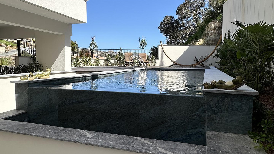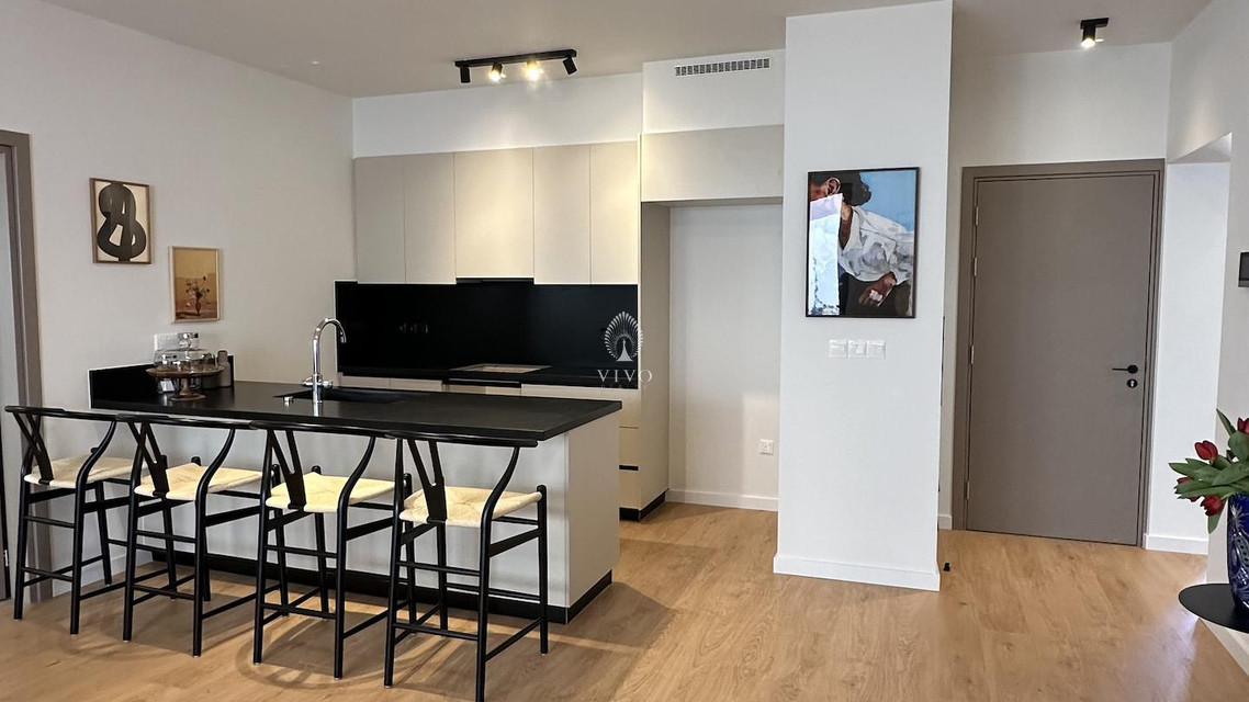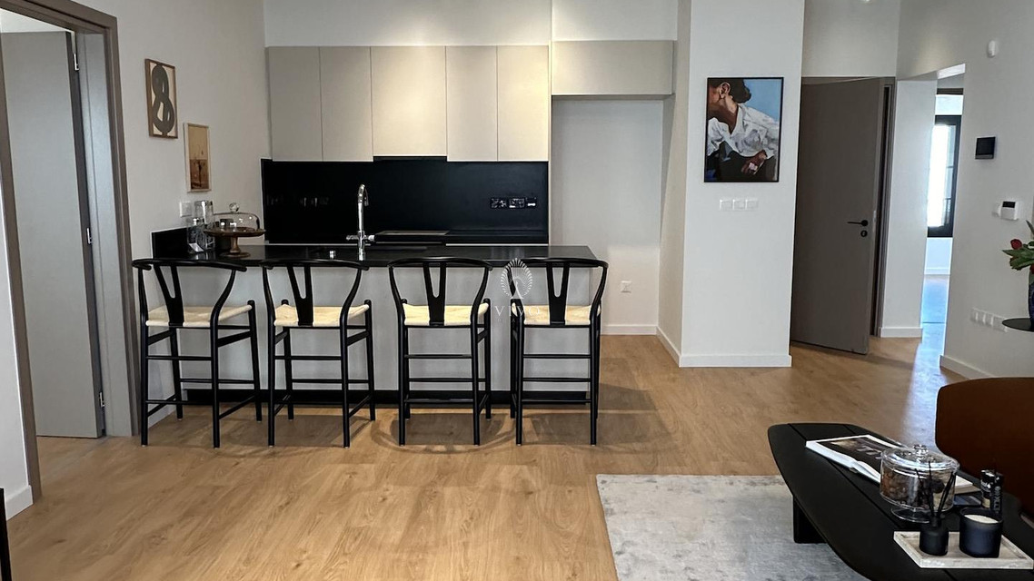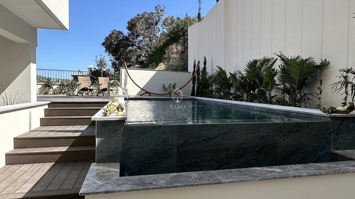 Part of a small residential building of just eight units in total, this flat offers a bright open plan kitchen with living area, guest w/c, the three bedrooms one of which the master with en-suite and main bathroom. Huge veranda o 178sq m. total with a private pool and barbeque area. High quality materials throughout, installation of a/c units, electric heating panels, photovoltaic system, electric shutters in the bedrooms two parking spots and more.