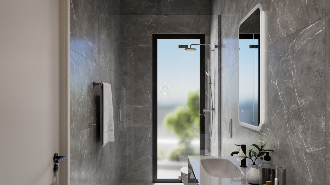 Each bedroom is designed with comfort and elegance in mind, featuring large windows for natural light, built-in wardrobes, and serene aesthetics. The master suite opens to a private balcony with lush views and a hint of the sea.
