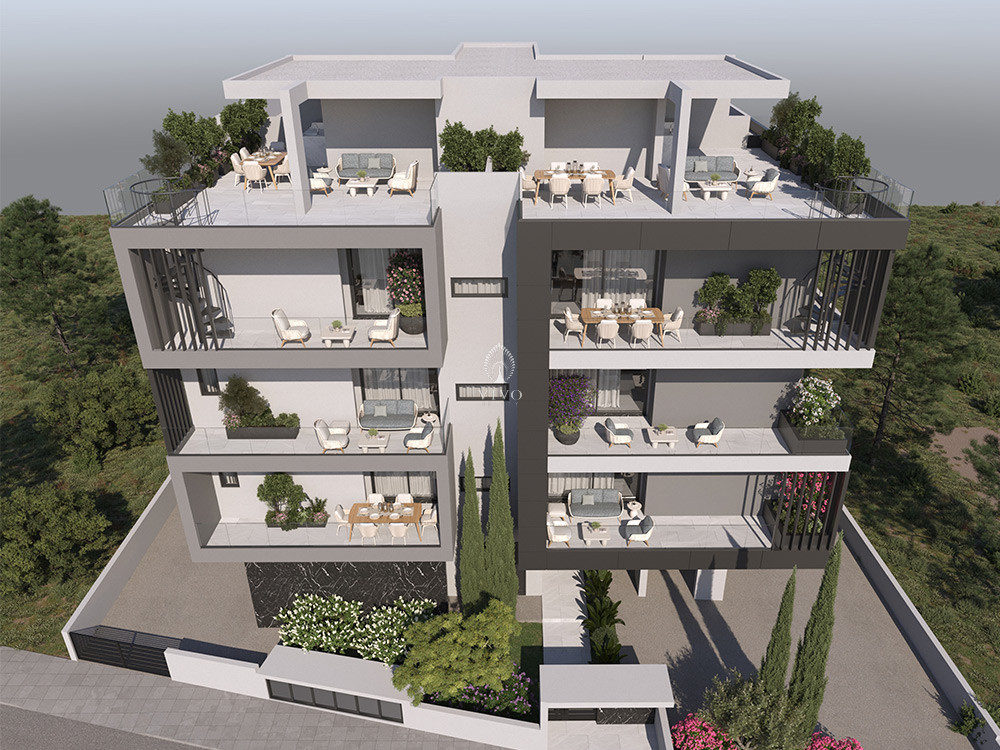 Modern 2-bedroom apartment under construction in the sought-after area of Ekali. This comfortable home offers 80 m² of internal living space, covered veranda of 17 m2, 33 m2 of covered area on the roof garden which can be used as a third bedroom and a total of 77 m2 of roof garden, thoughtfully designed for easy living. Located on the top floor of a three-story building, the property is ideal for families & investors. Large semi separate kitchen, bright open living & dining area leading to the covered veranda, guest w/c, bathroom and bedrooms. Staircase leads to the private roof garden with extra bedroom, w/c and huge veranda with open views.