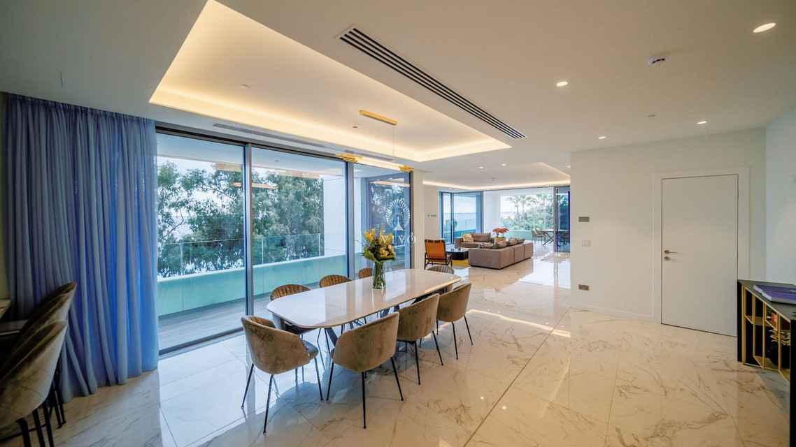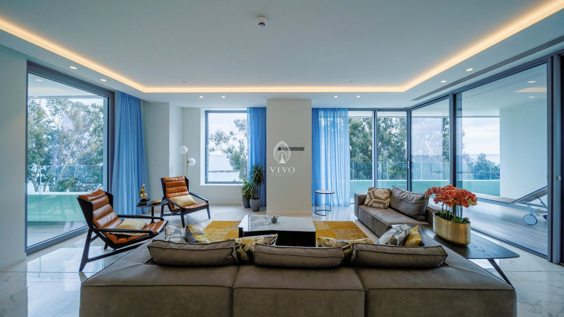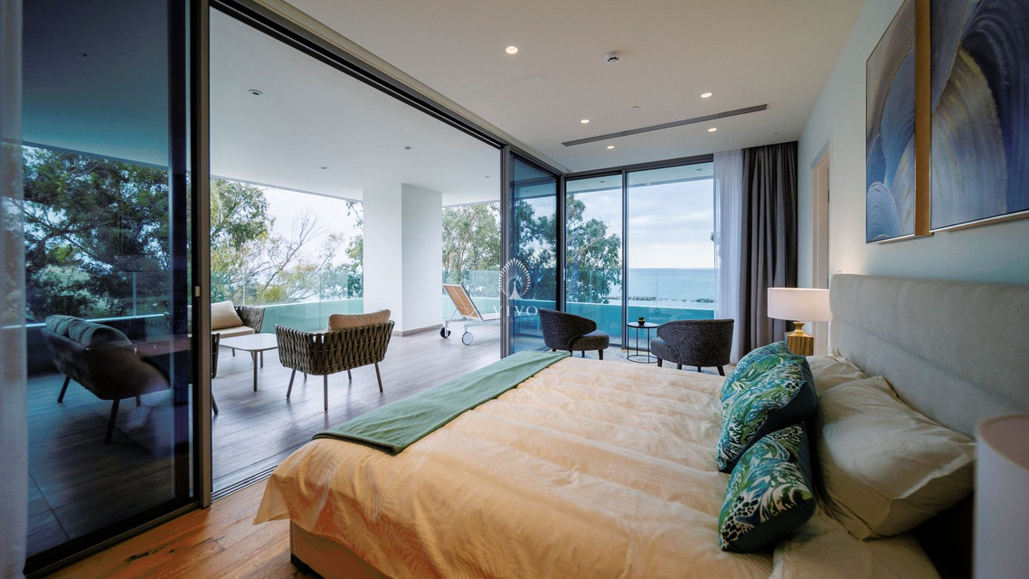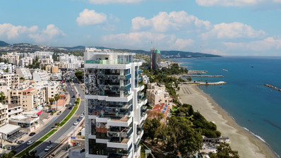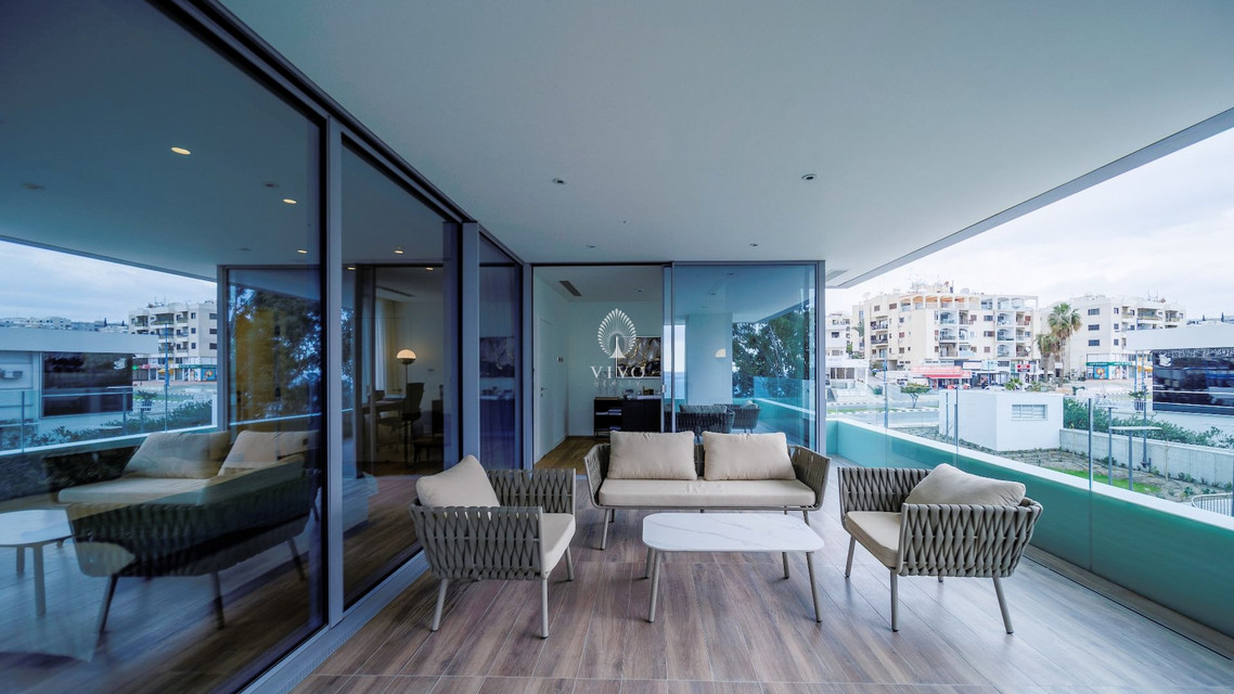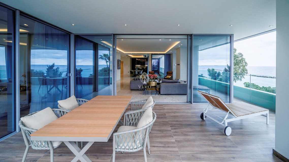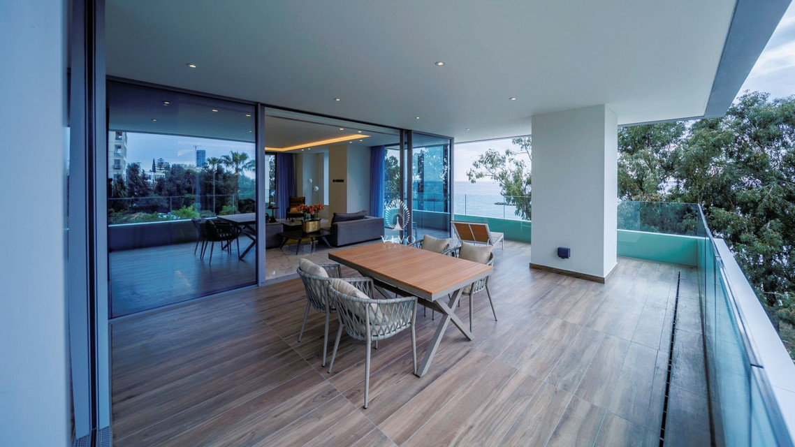 Seafront four bedroom apartment, located in Agios Tychonas. This unique apartment is designed to provide the feeling of maximum space and luxury. Has large verandas, a sophisticated layout, and a spacious master bedroom with a private balcony.