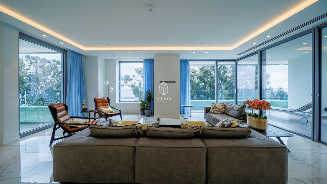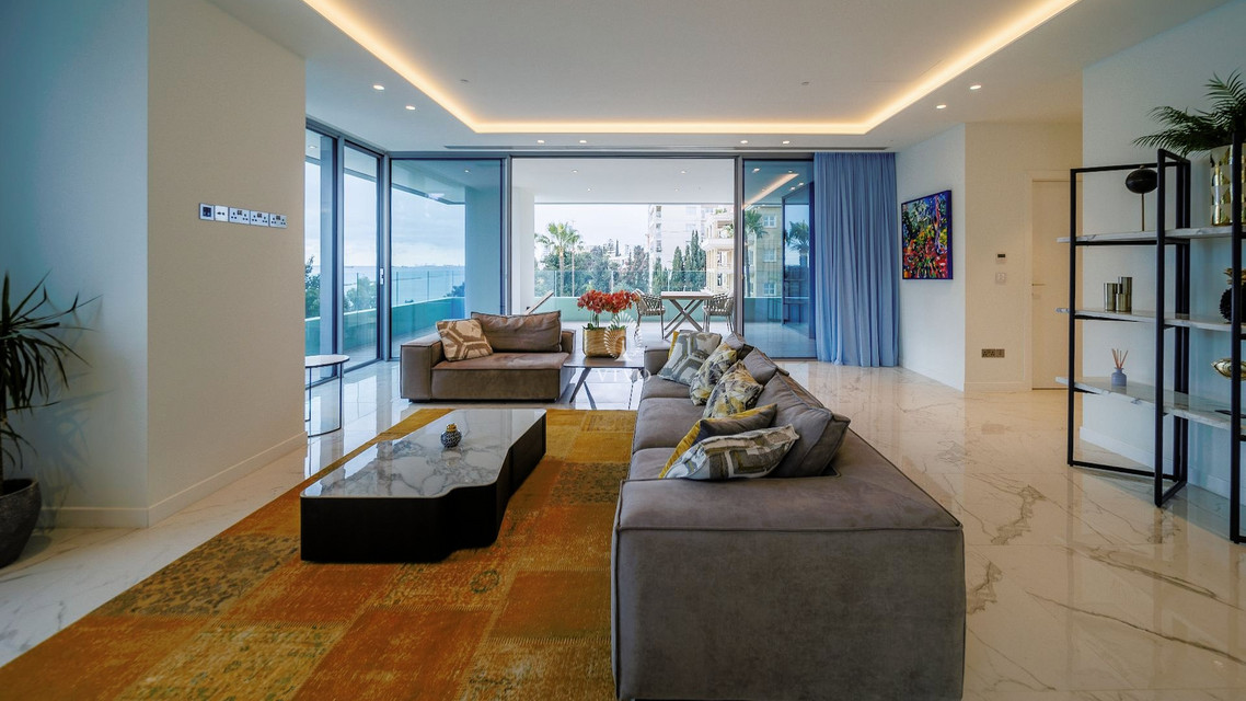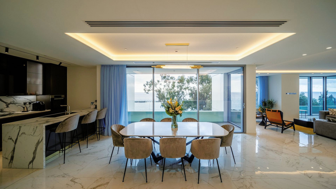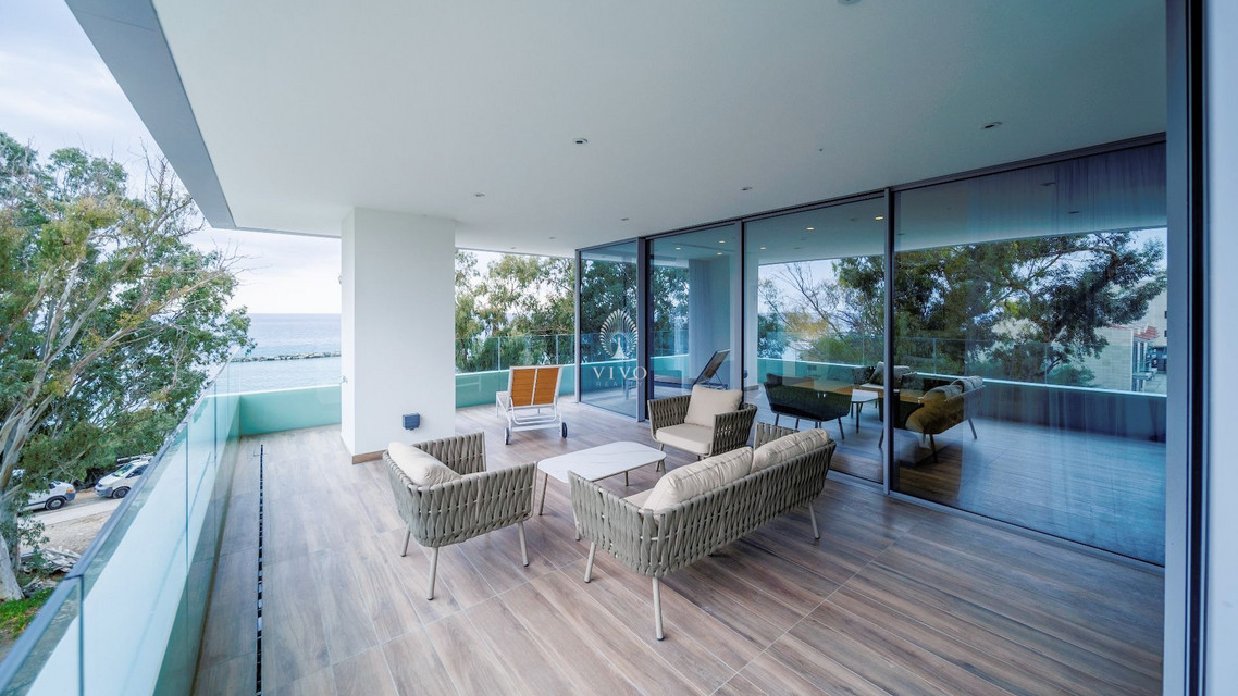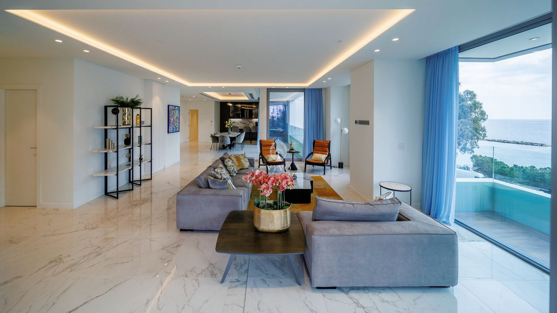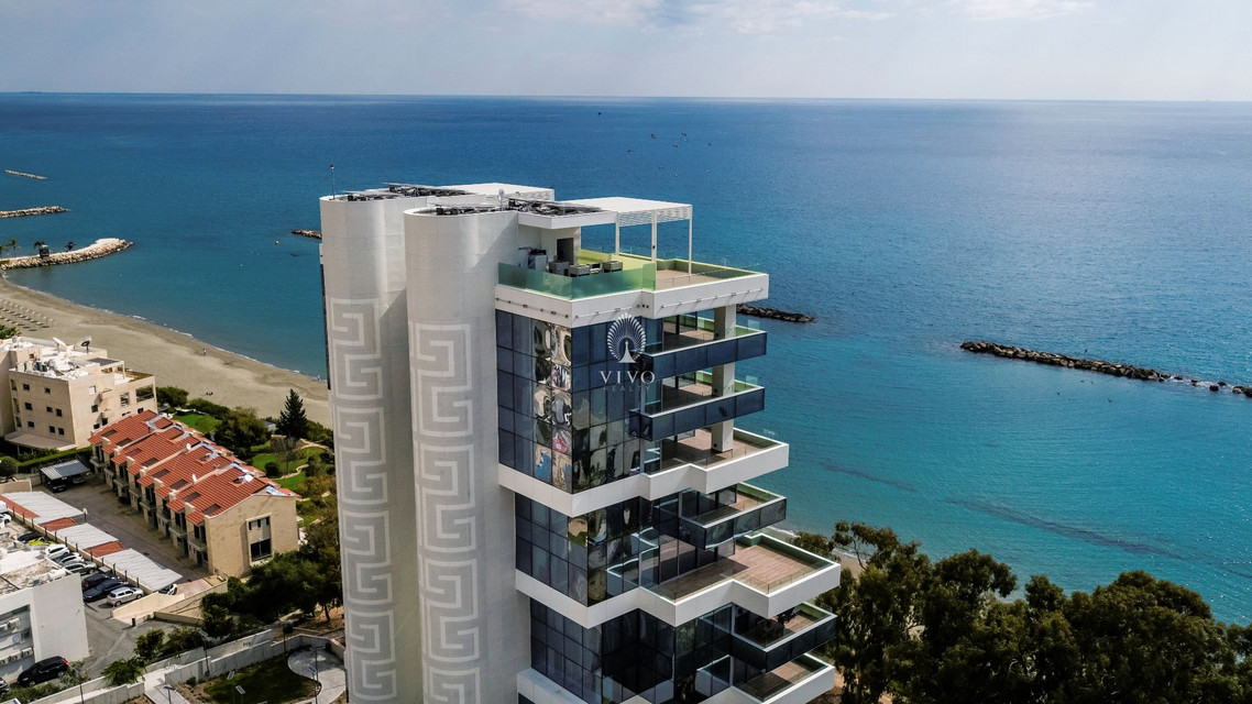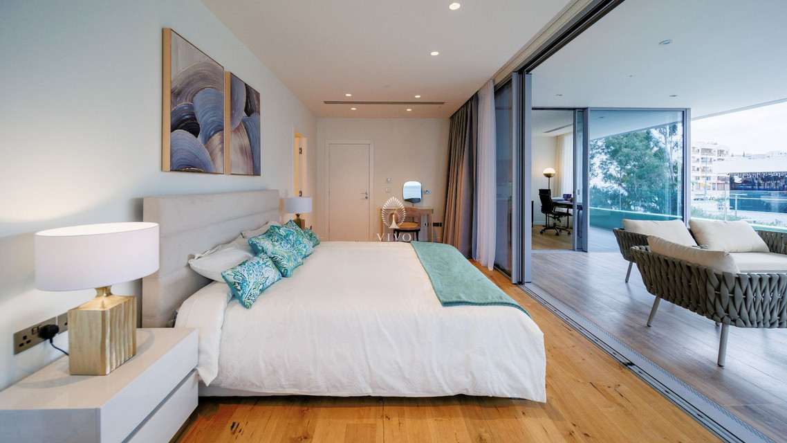 Seafront four bedroom apartment, located in Agios Tychonas. This unique apartment is designed to provide the feeling of maximum space and luxury. Has large verandas, a sophisticated layout, and a spacious master bedroom with a private balcony.
