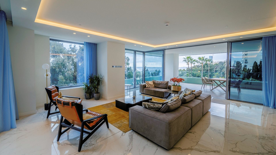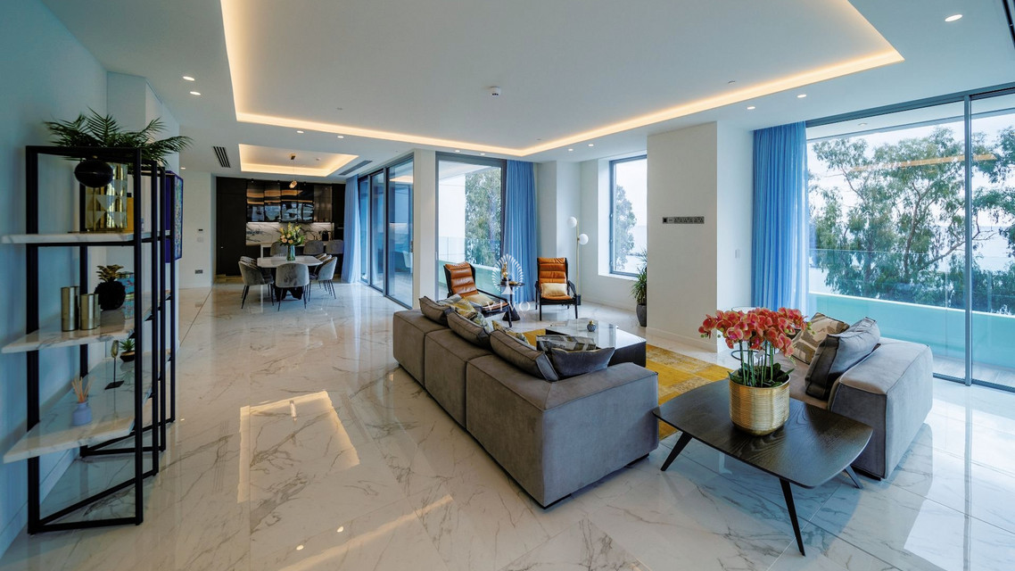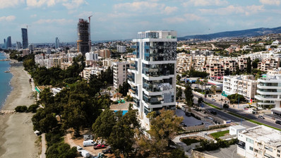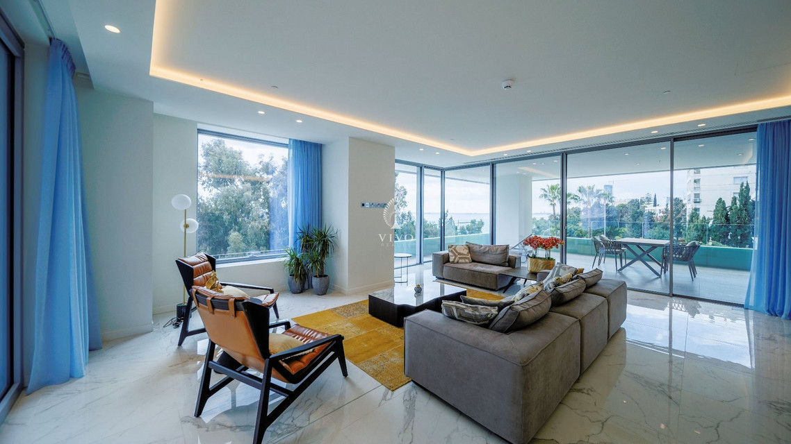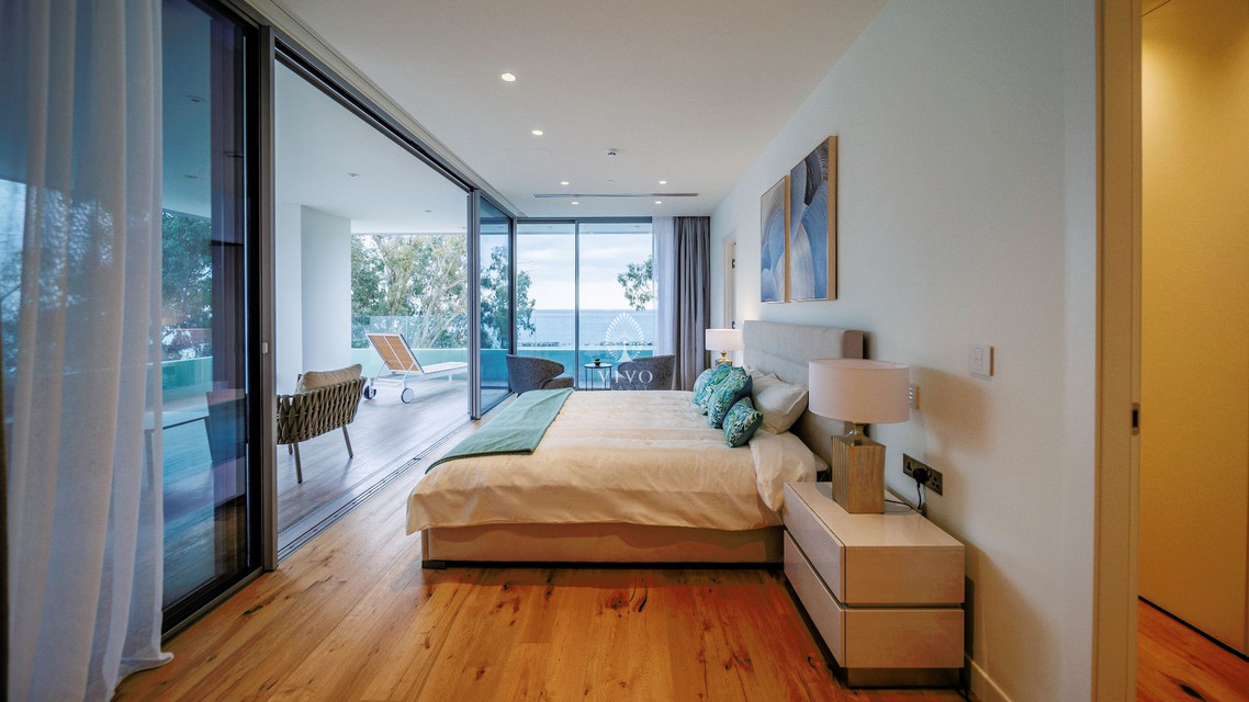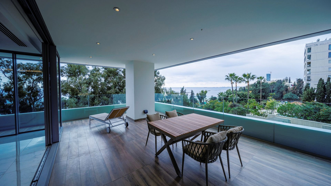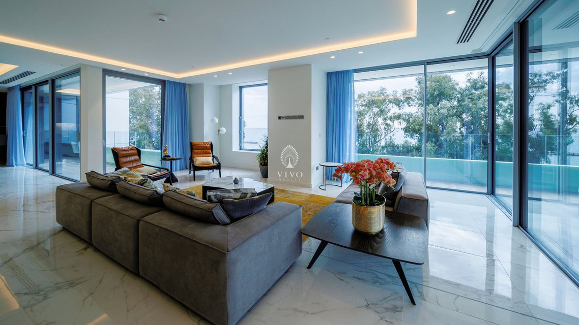 Seafront four bedroom apartment, located in Agios Tychonas. This unique apartment is designed to provide the feeling of maximum space and luxury. Has large verandas, a sophisticated layout, and a spacious master bedroom with a private balcony.