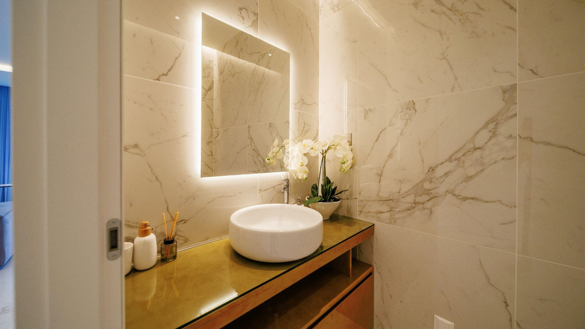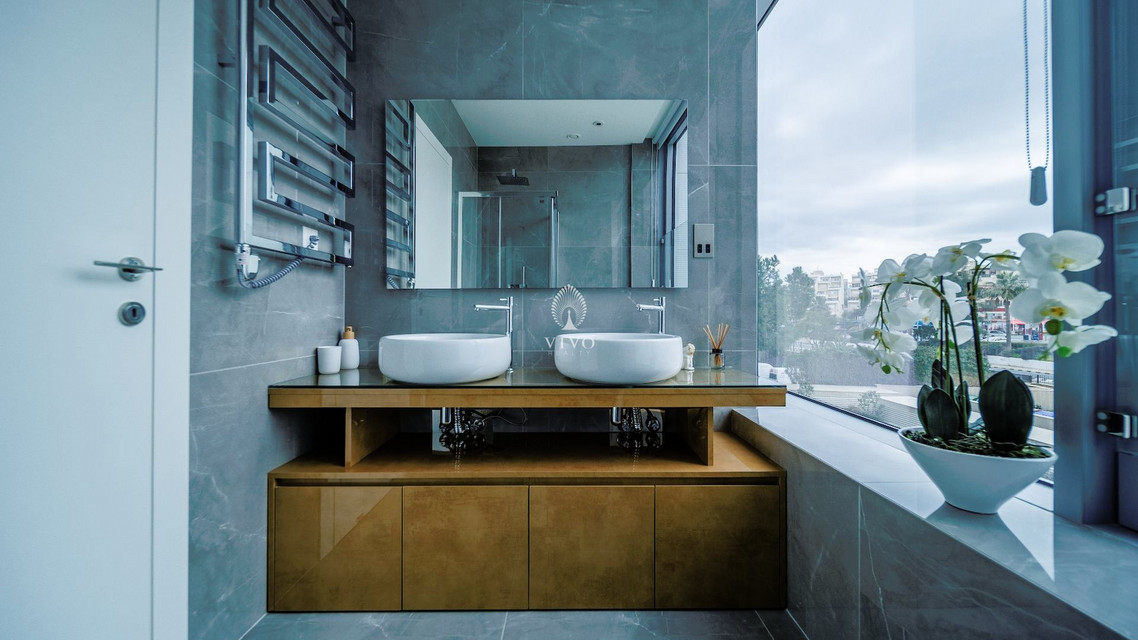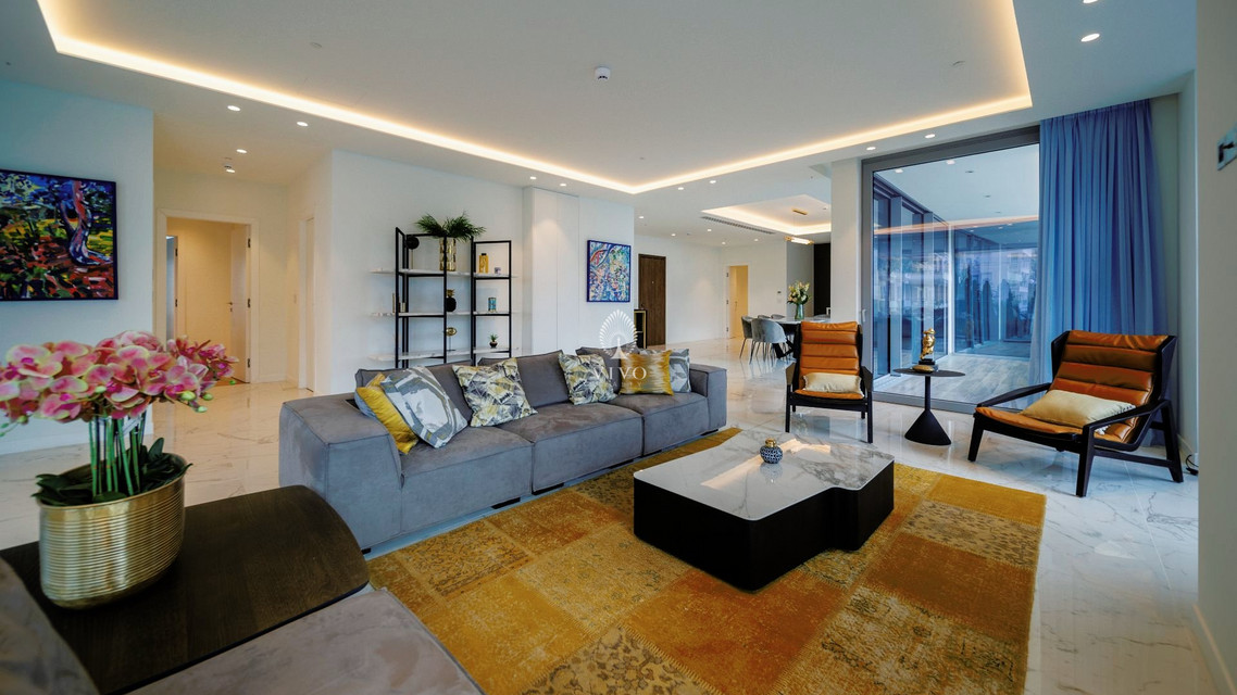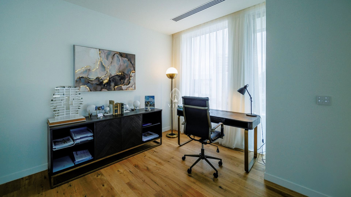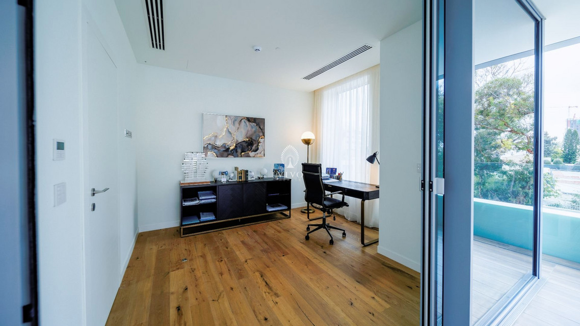 Situated in a complex with communal swimming pool, personal access to a private fitness center, jacuzzi, lounge zone, has 24/7 security, CCTV, panoramic views, Italian floorings, kitchen furniture and fitted wardrobes, ceramic tiles, parquet flooring, equipped with kitchen appliances, fire alarm and underfloor heating.