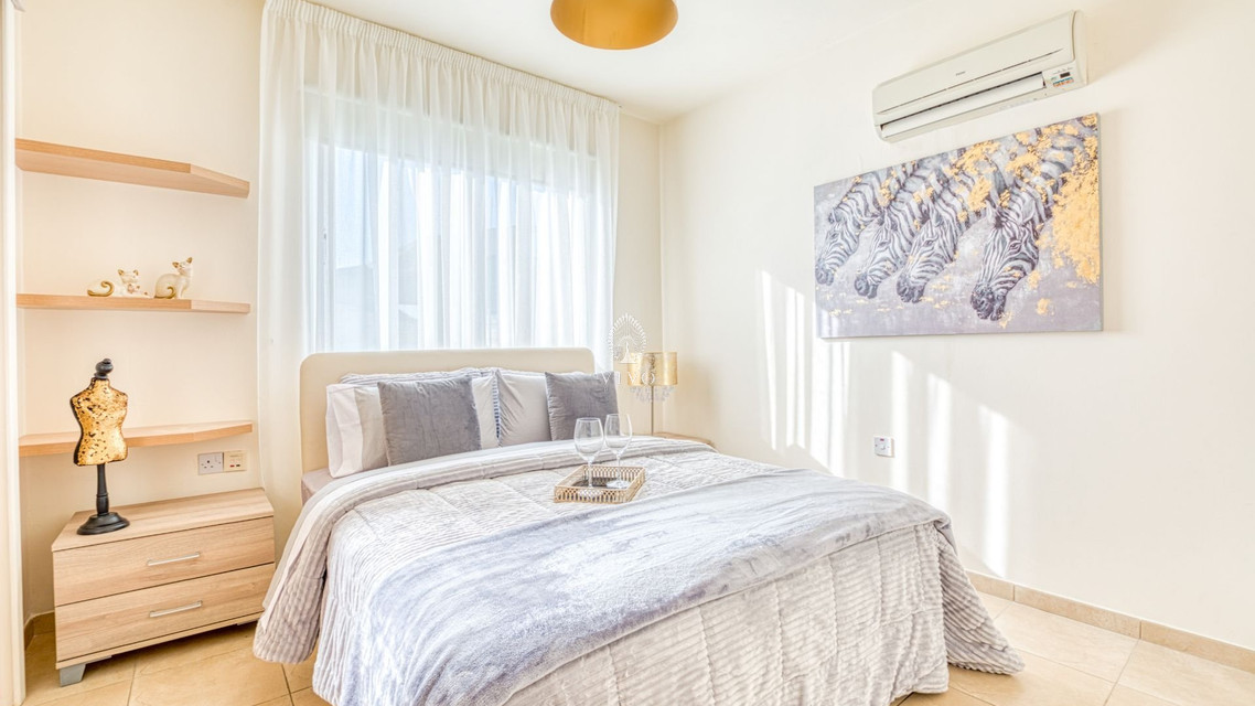The apartment ha covered area of 92 sqm and veranda od 40 sqm. Also it has roof garden, gym, 2 communal pools and comes with furnitures and electrical appliances. Also has A/C units.