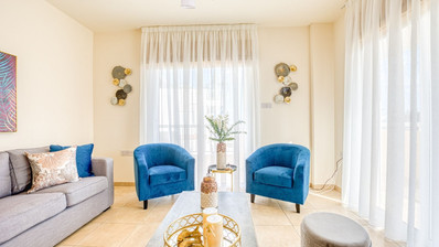 Its a 3 bedroom apartment with an open space area of living room, dinning room and kitchen. There is a large veranda looking to the road passing in front of the building.