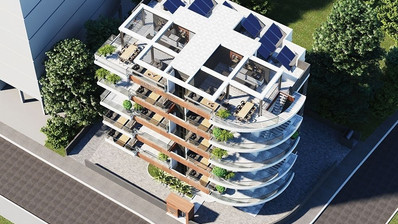 Two bedroom apartment, located in Strovolos area, Nicosia. The apartment has covered internal area of 83 sqm, covered veranda of 24 sqm, uncovered area of 60 sqm, common area of 10.7 sqm, and total area of 177.7 sqm.