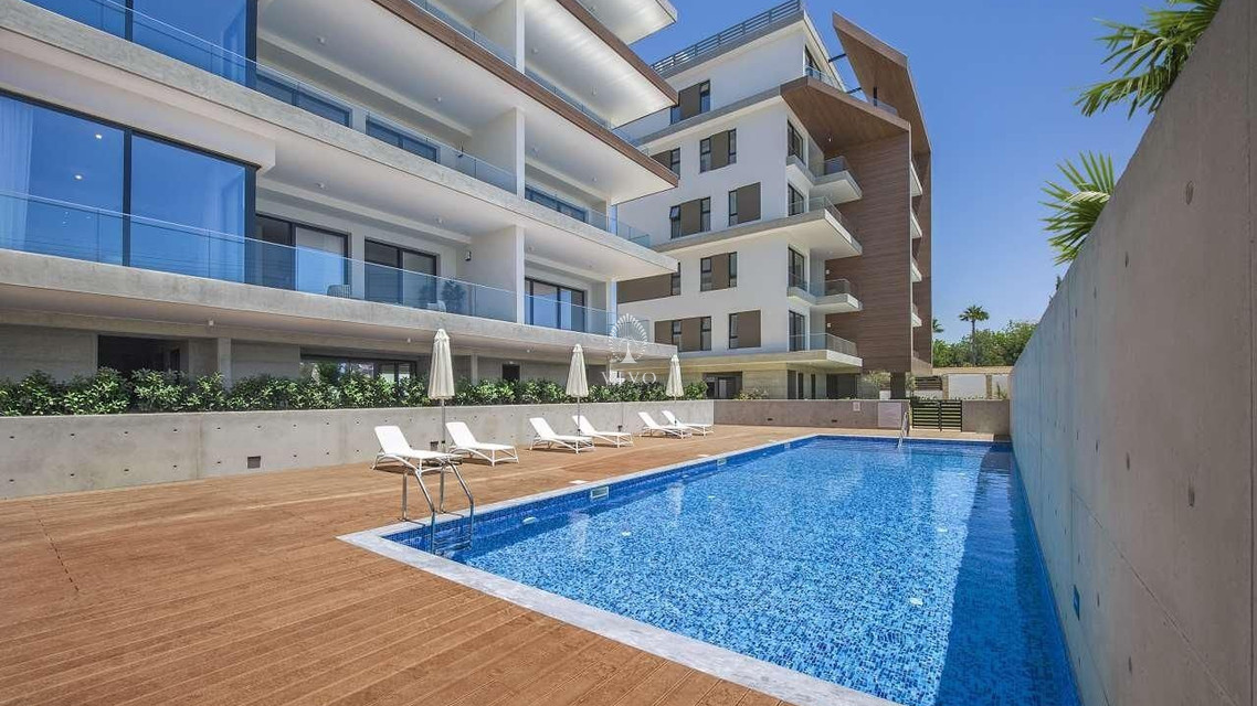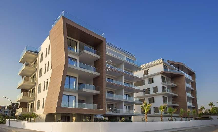 Luxurious two bedroom apartment in Linopetra. This apartment has large veranda, communal swimming pool, sea views and it is just a short walk away from all city amenities. It also has parking, elevator and storage room.