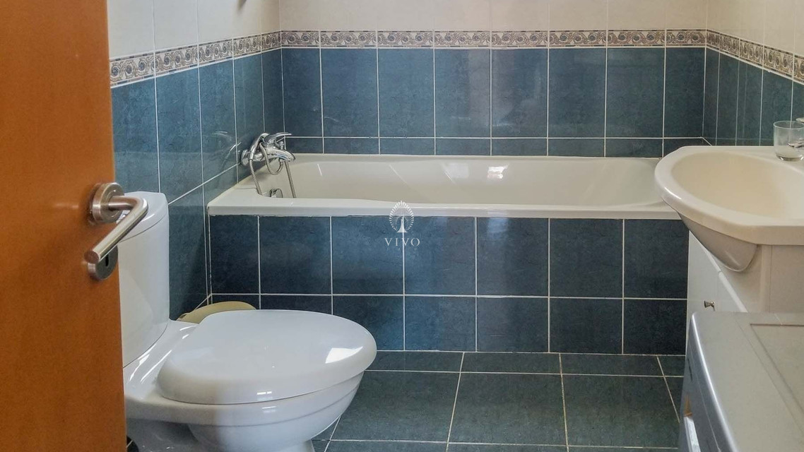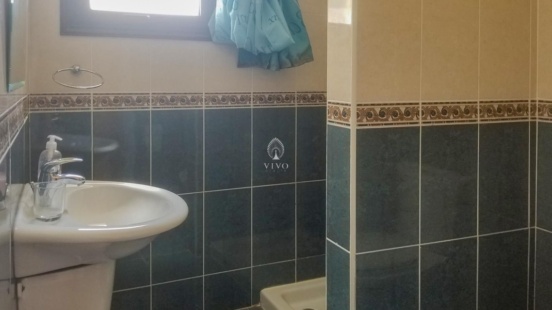 Also downstairs is one large bedroom with built-in wardrobes and an adjacent bathroom with shower. Upstairs are three large bedrooms, also with built-in wardrobes. Two share a bathroom with full bath and a clothes washer. The master bedroom has an en-suite bathroom with shower as well as access to a balcony that has just a bit of sea view.