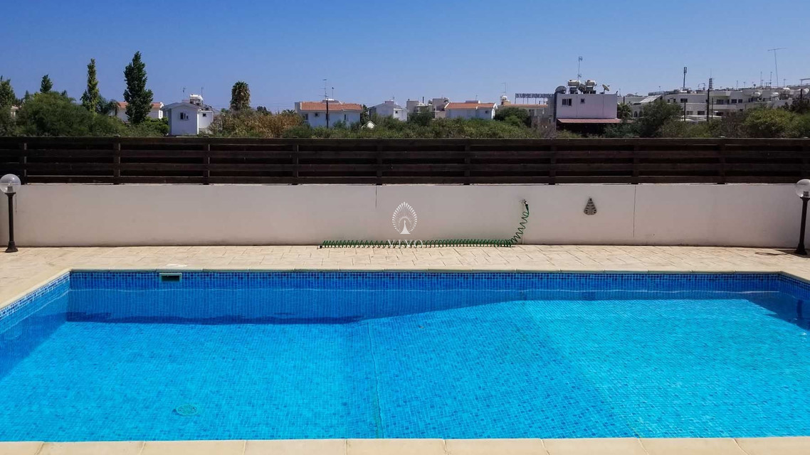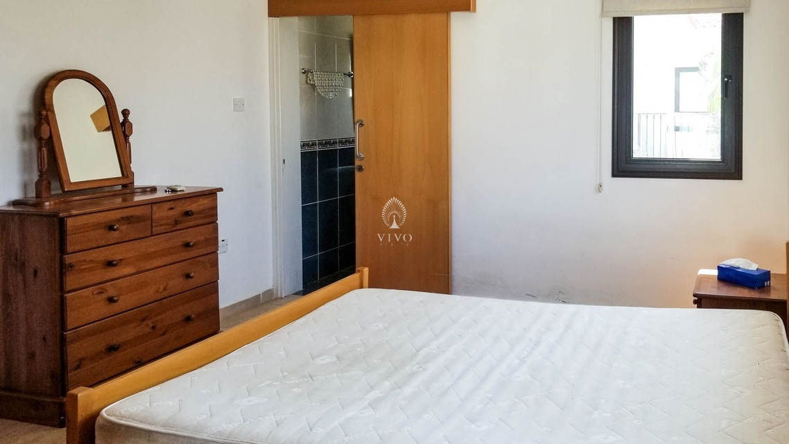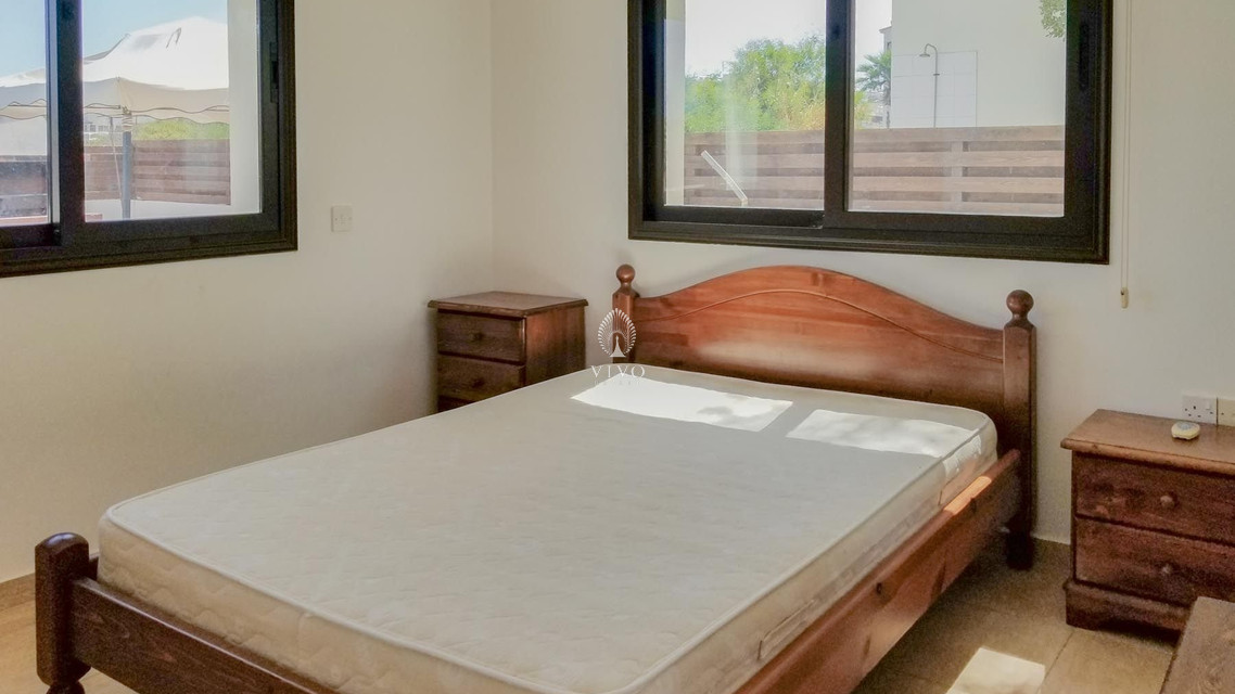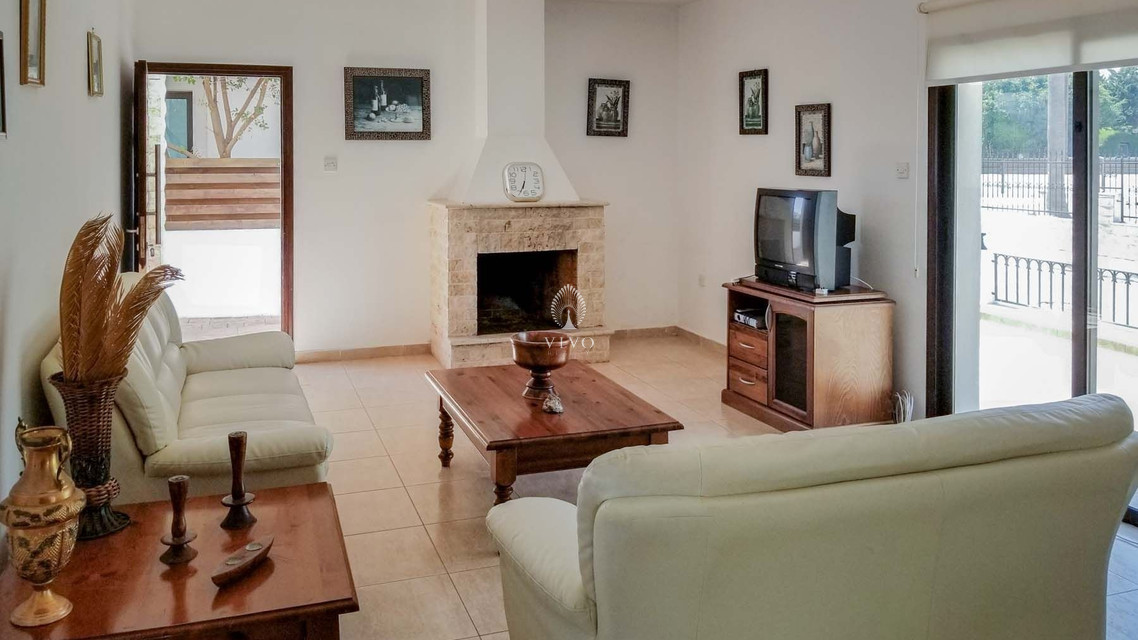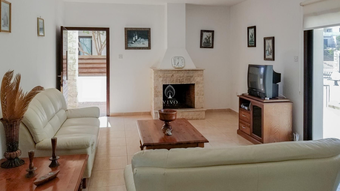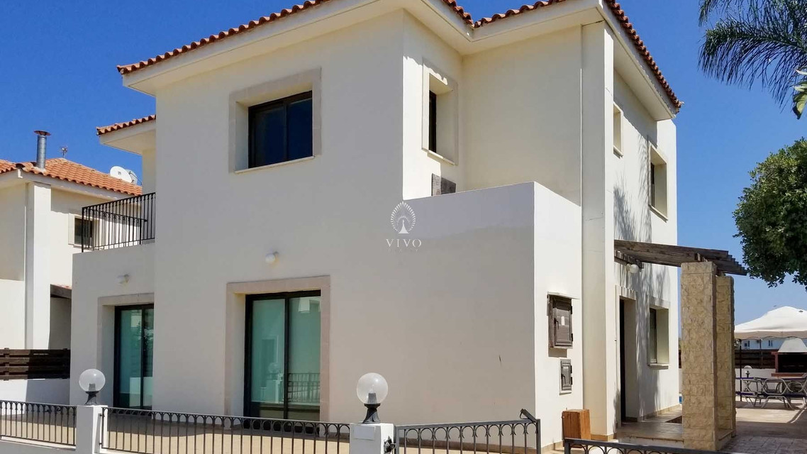 Four bedroom detached house, located near the beach in Kapparis area. Has a private pool and full title deeds! The large downstairs has a spacious living room with dining room and corner kitchen in an open plan layout, with large sliding doors to the front veranda. A back door leads to the sunny pool patio with a gazebo tent and sitting area with shade.