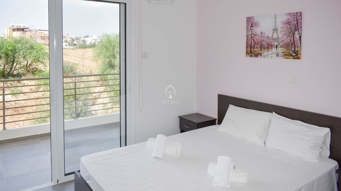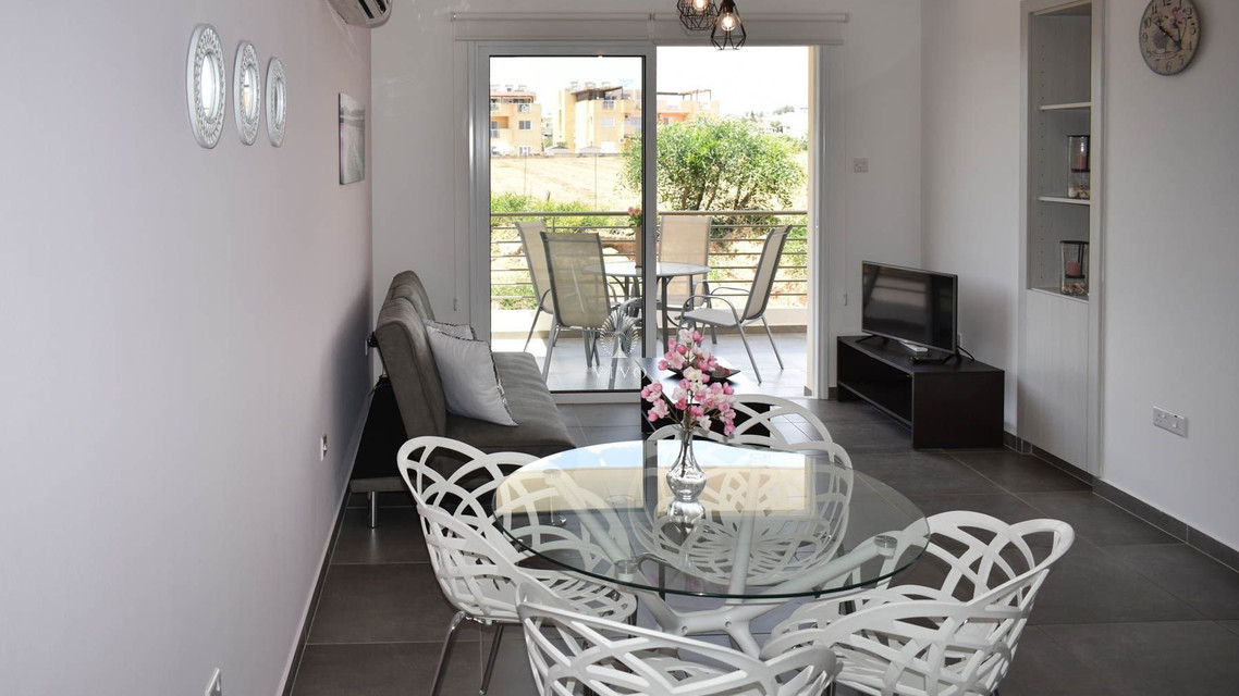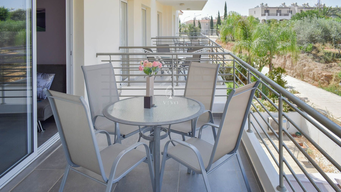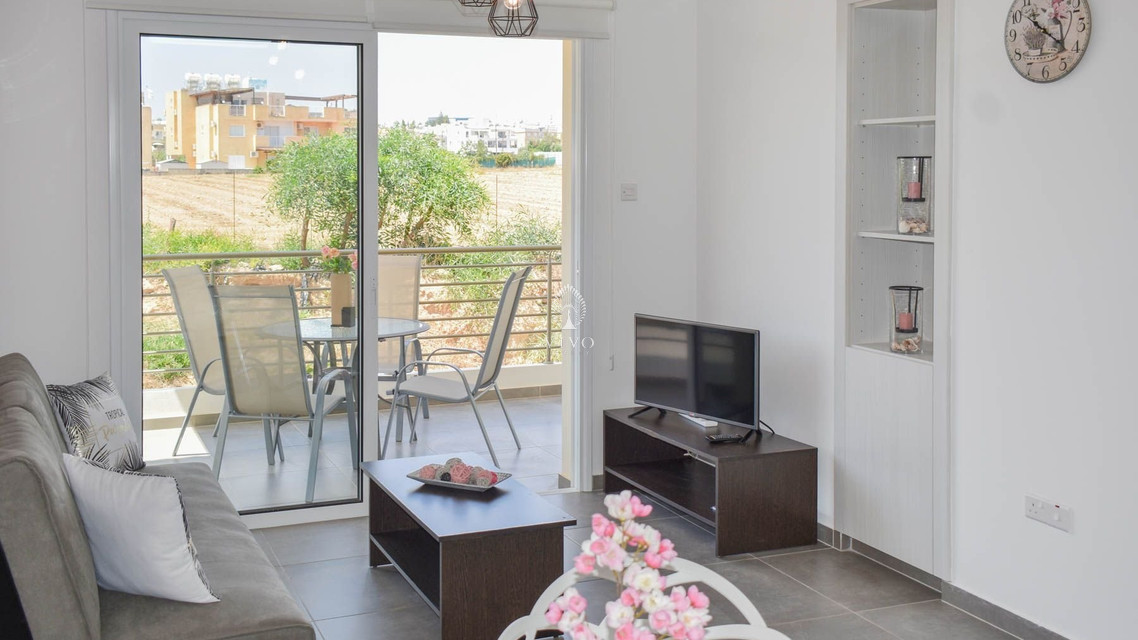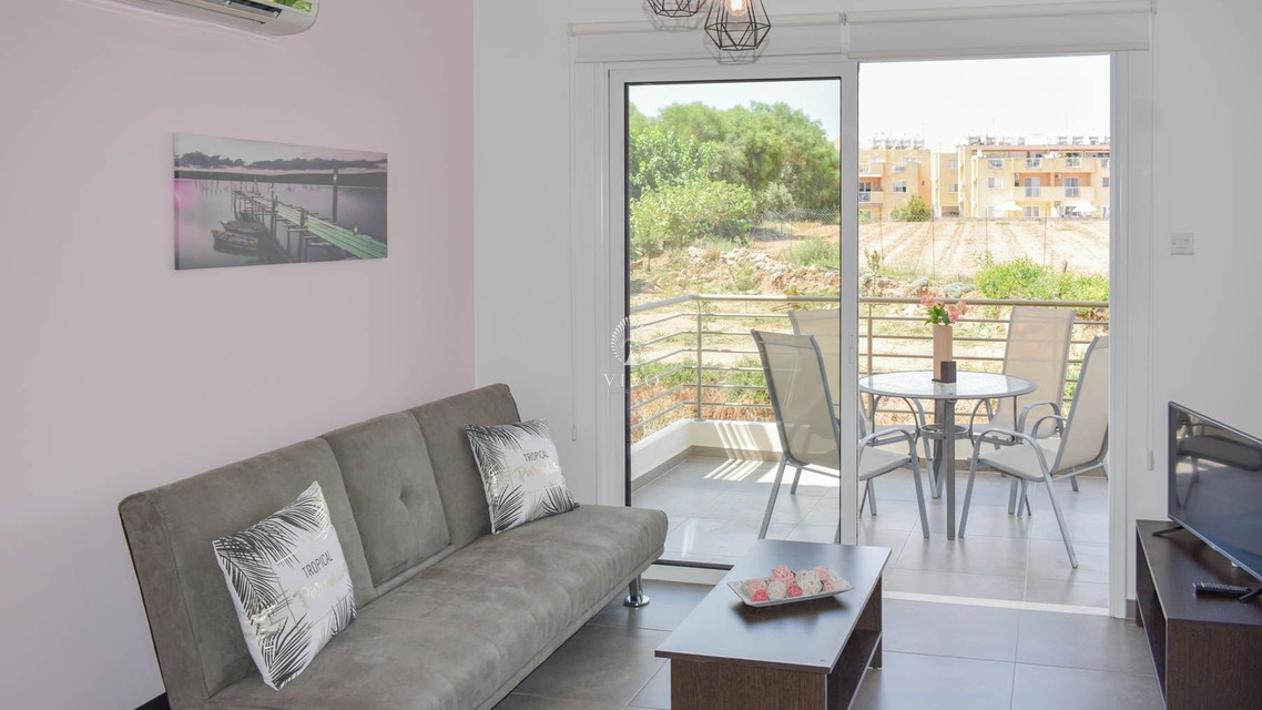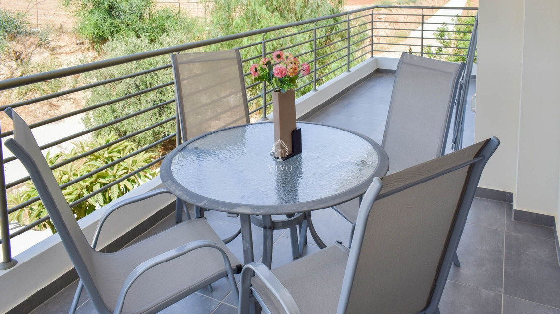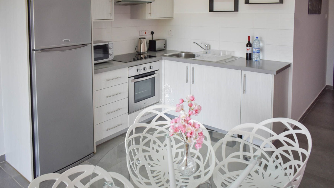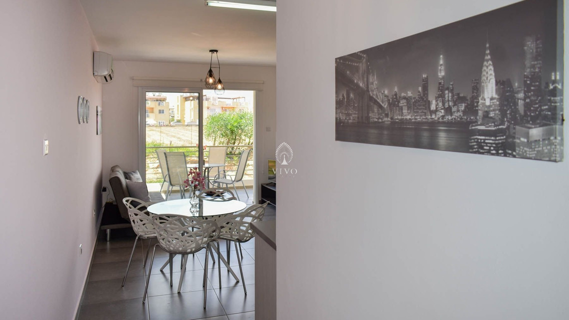 Corner 2 bedroom apartment, located in Kapparis area. Situated looking over the green area outside the complex. Enter into an open-plan living area with large double-glazed glass doors out to a 15 sqm veranda, providing lounge and dining options both indoor and out.