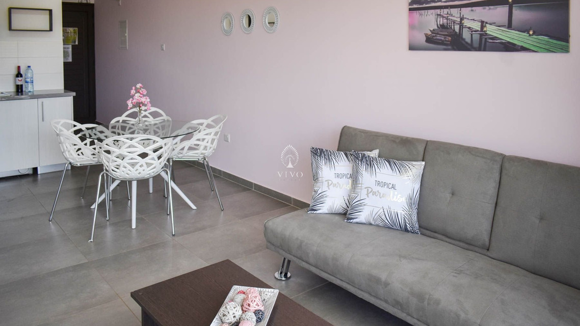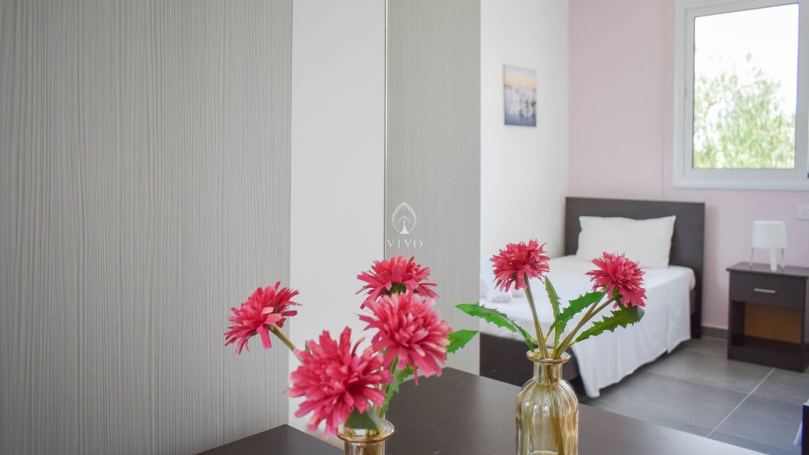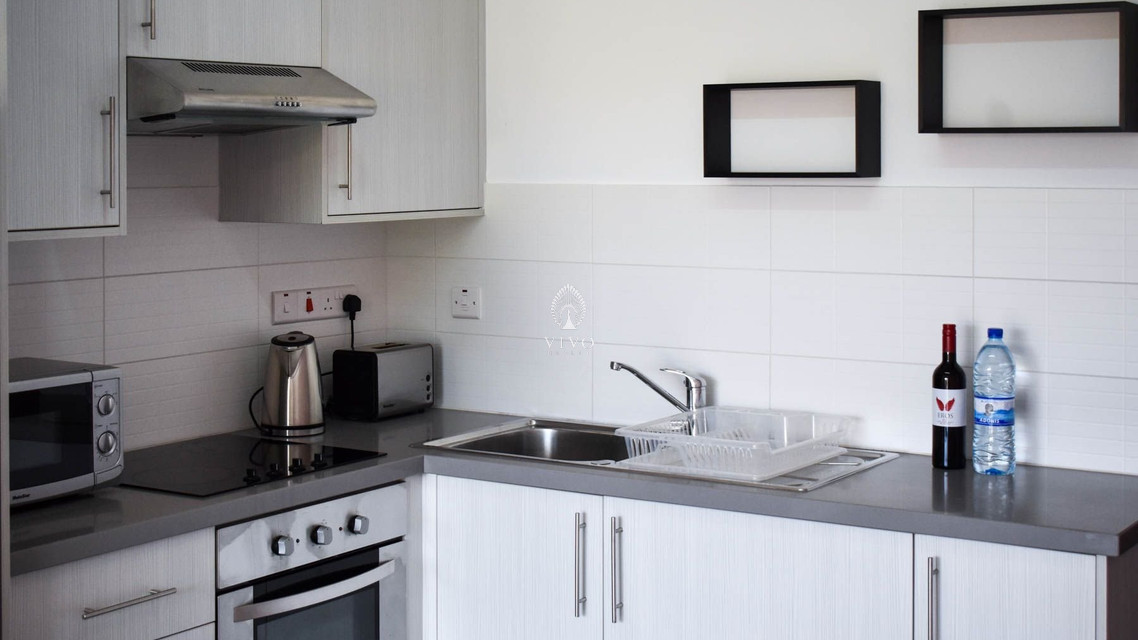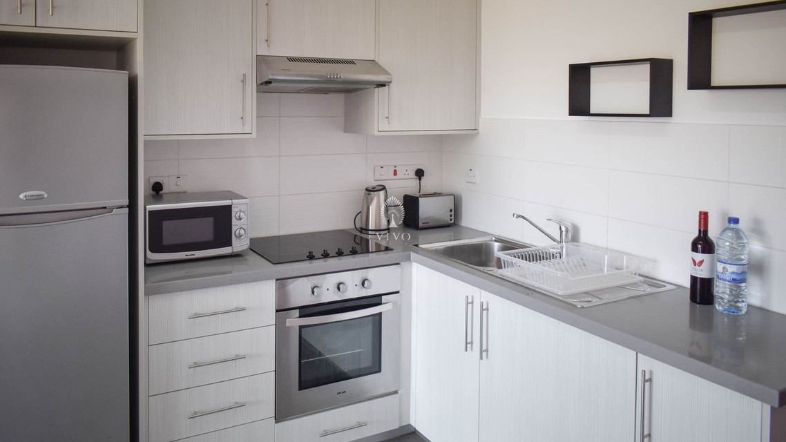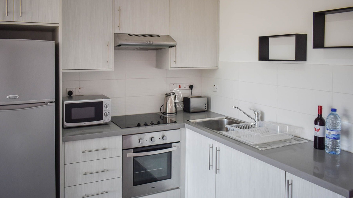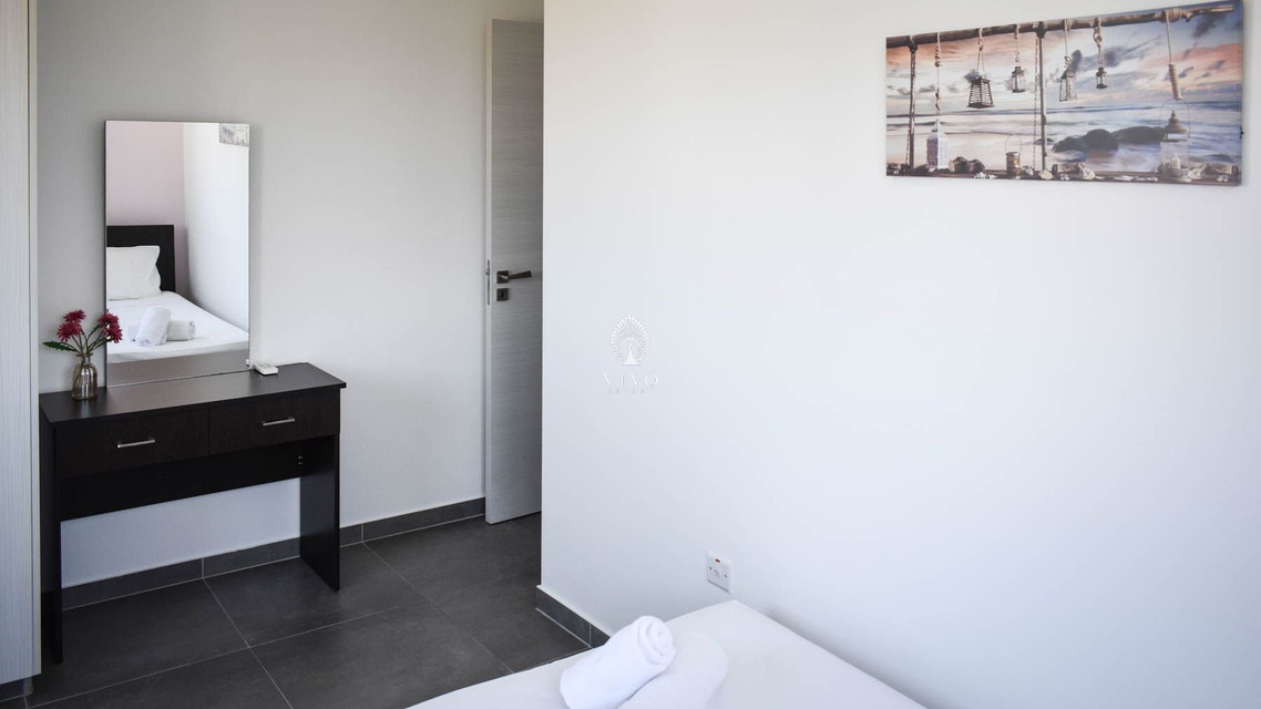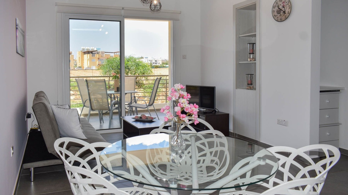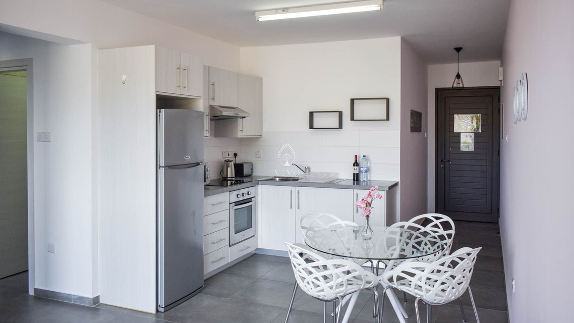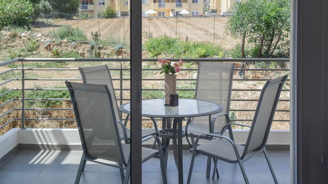 Corner 2 bedroom apartment, located in Kapparis area. Situated looking over the green area outside the complex. Enter into an open-plan living area with large double-glazed glass doors out to a 15 sqm veranda, providing lounge and dining options both indoor and out.