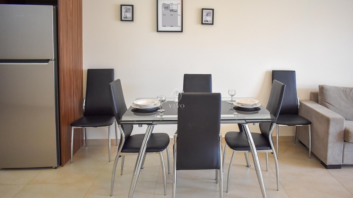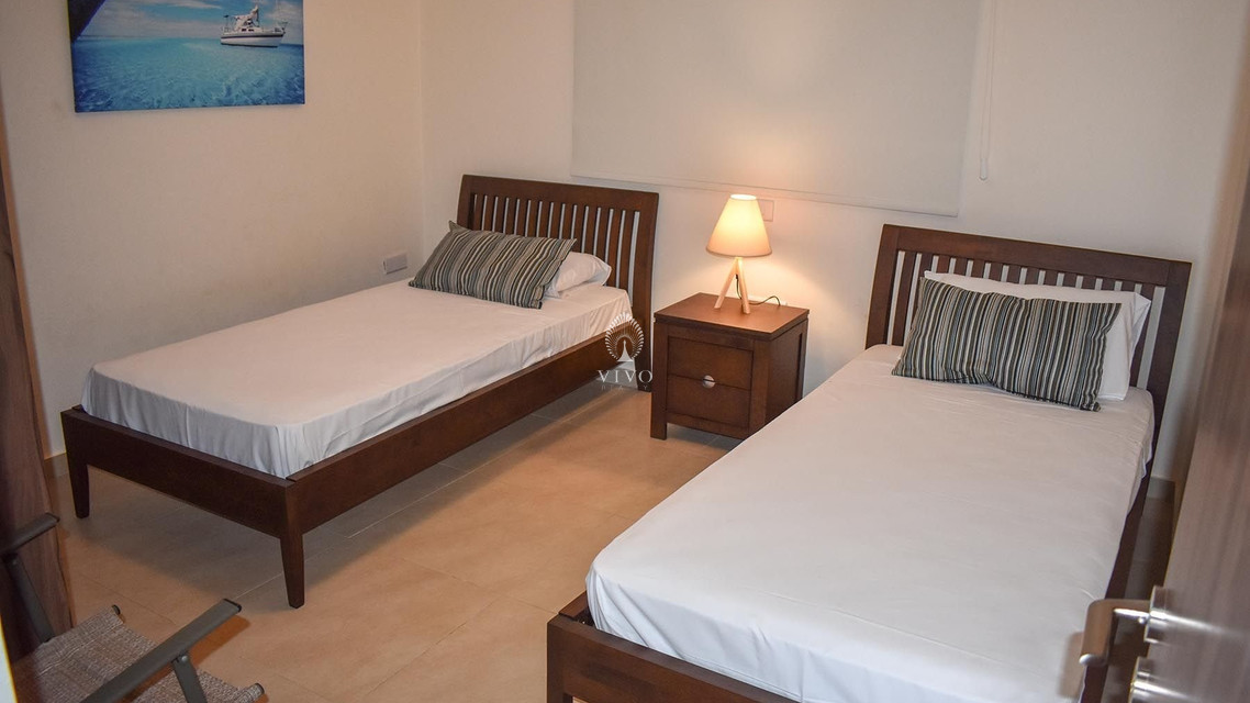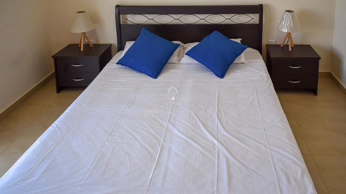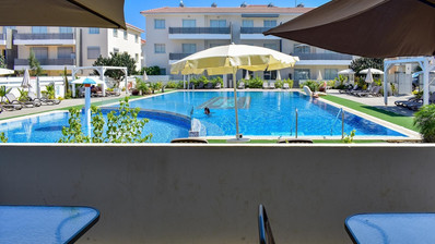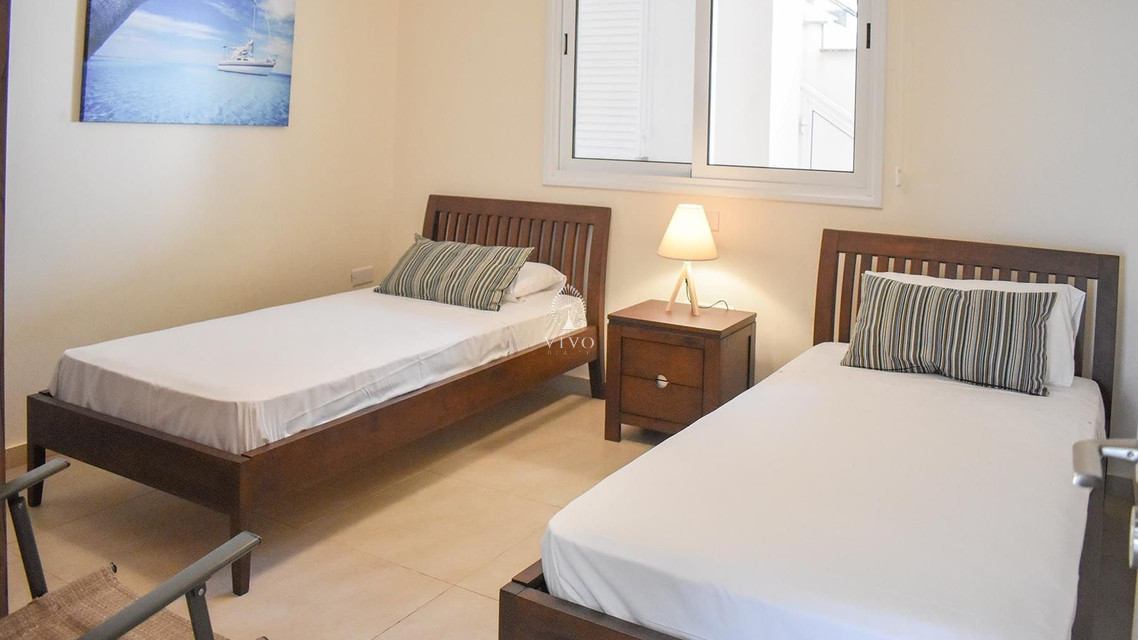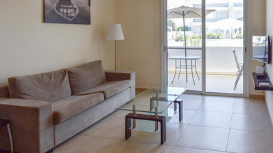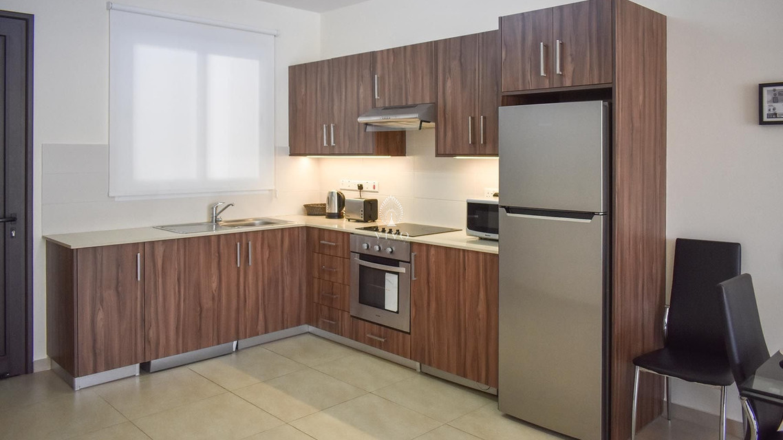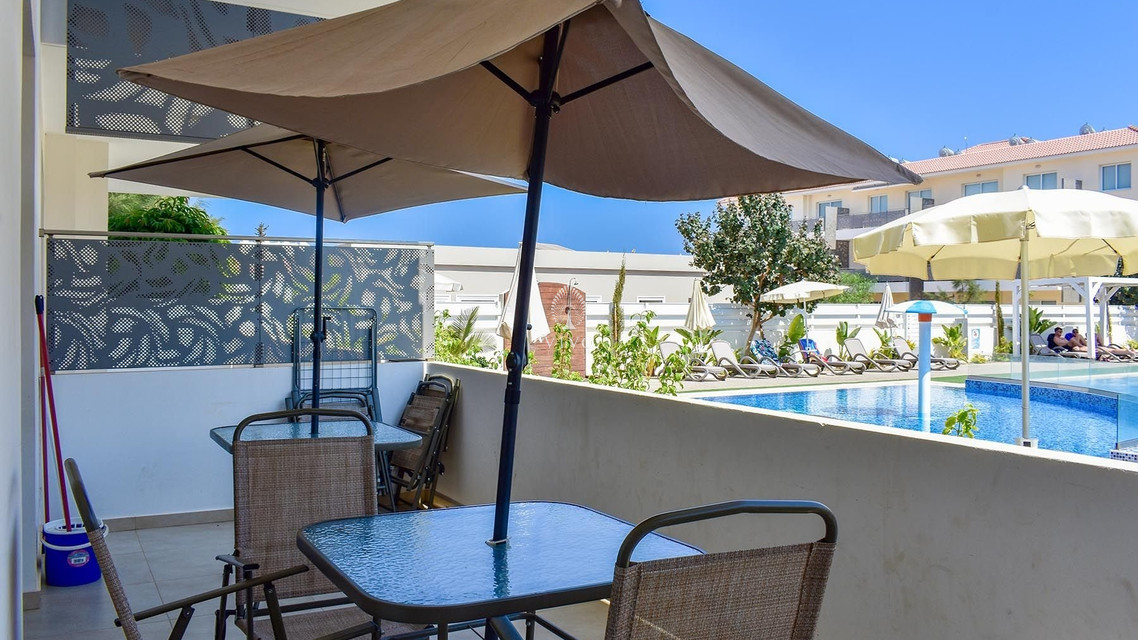 Poolfront 2 bedroom apartment, located in Kapparis area. The apartment has a large, open-plan kitchen, living, and dining room that leads out through double-glazed sliding doors to the covered balcony.