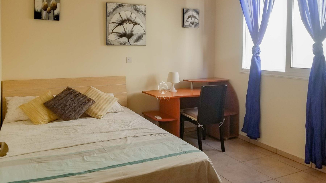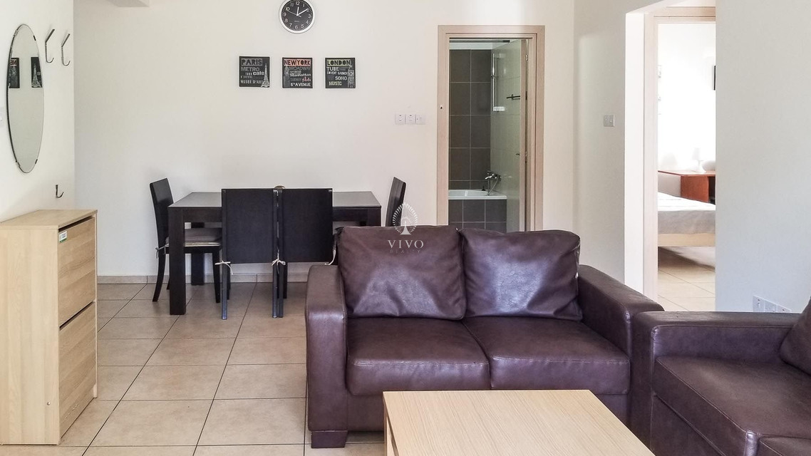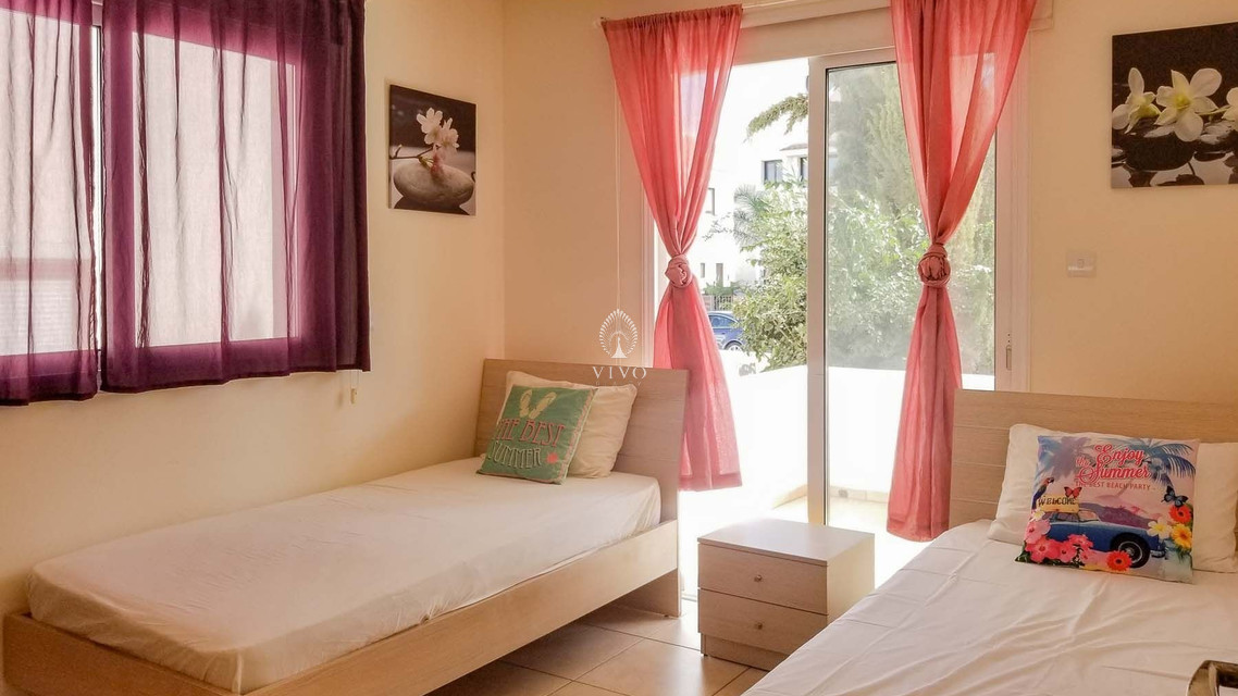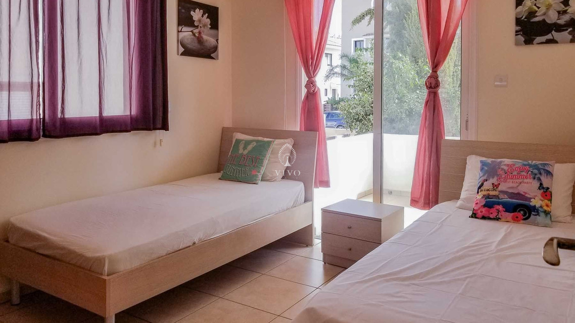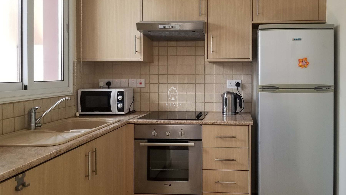 Two bedroom ground floor apartment, located in Kapparis area. Has a large veranda surrounded with garden and green area. Enter into an open-plan living area with large double-glazed glass doors out to a 15 sqm veranda, providing lounge and dining options both indoor and out.