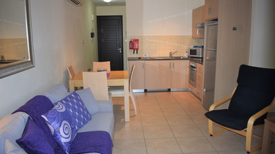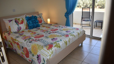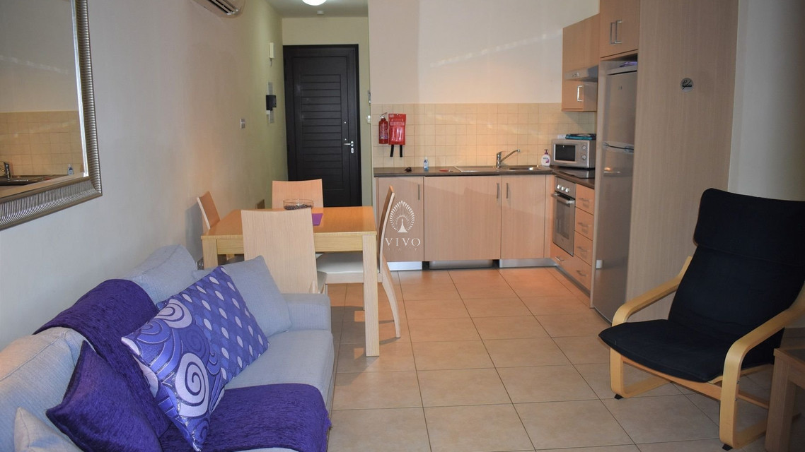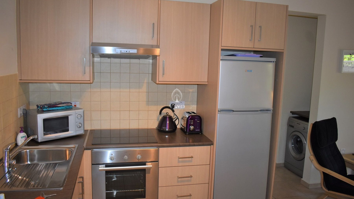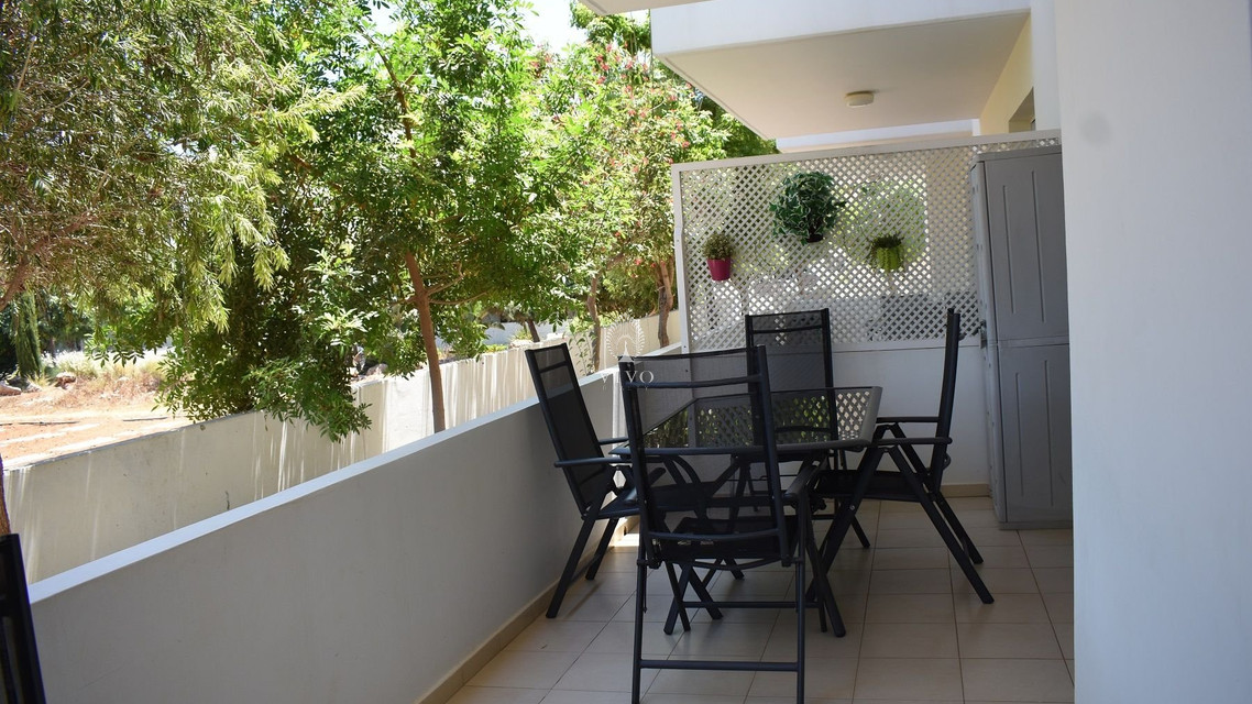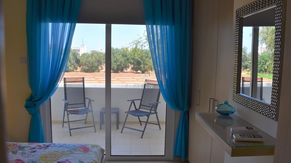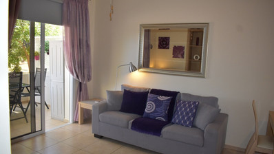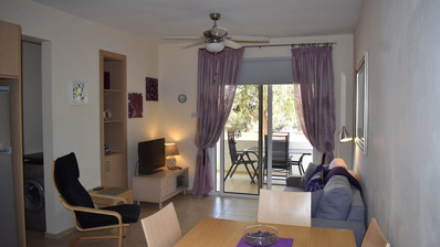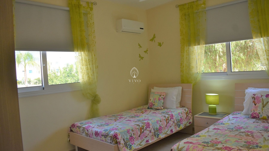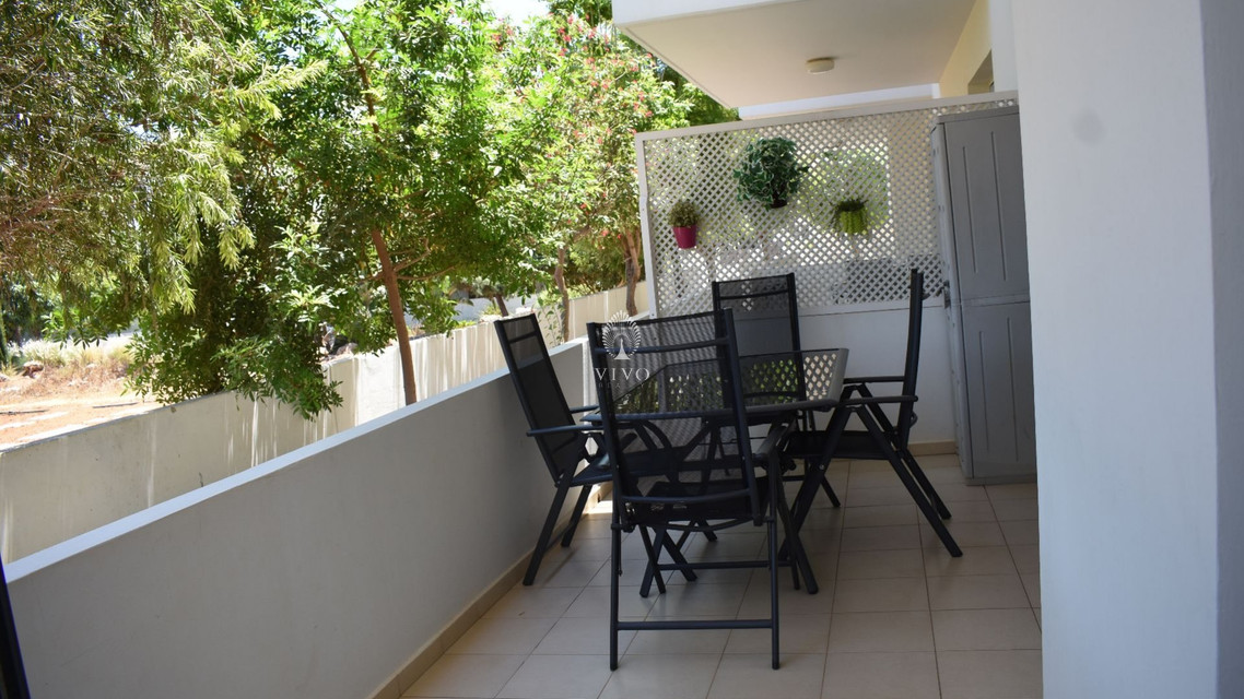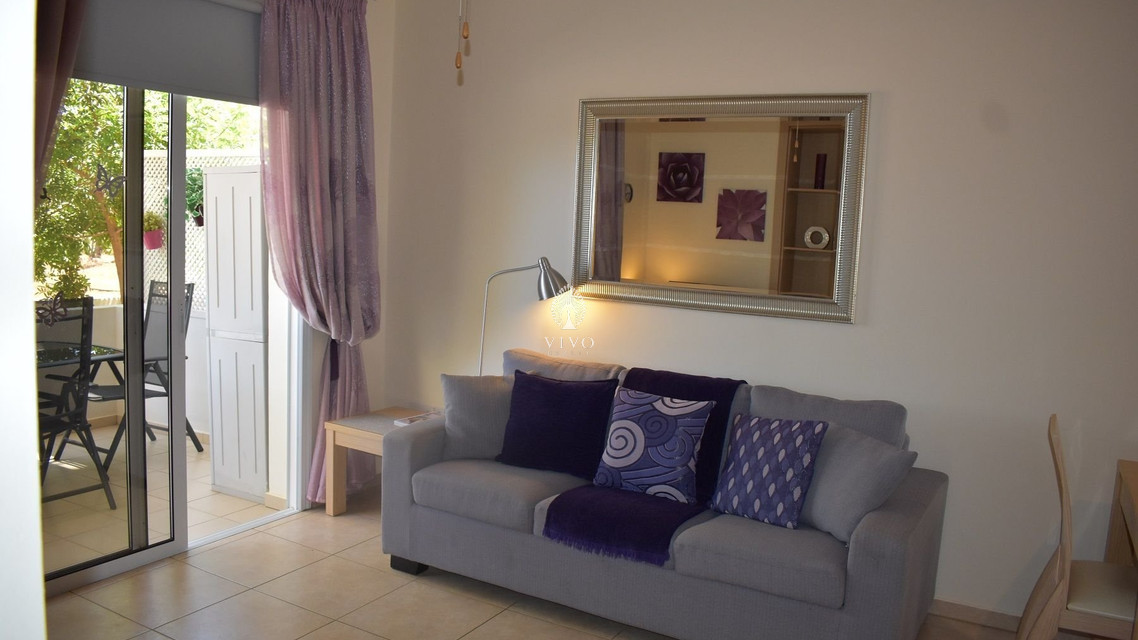 Two bedroom ground floor apartment, located in Kapparis area. Situated in a luxury seaside development this apartment has a large veranda surrounded by a garden and green area. In addition, it has an open plan design with large double glazed doors and 2 bright bedrooms. One of the bedroomshas a large sliding door to the veranda with its own built in storage. Has air condition split units.