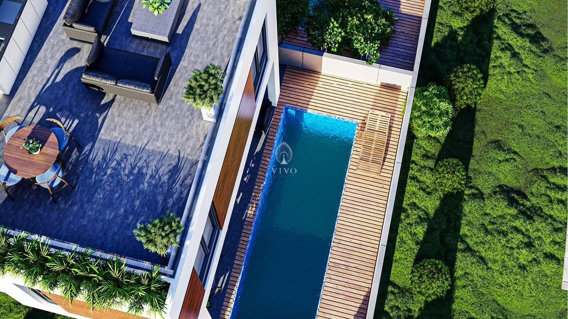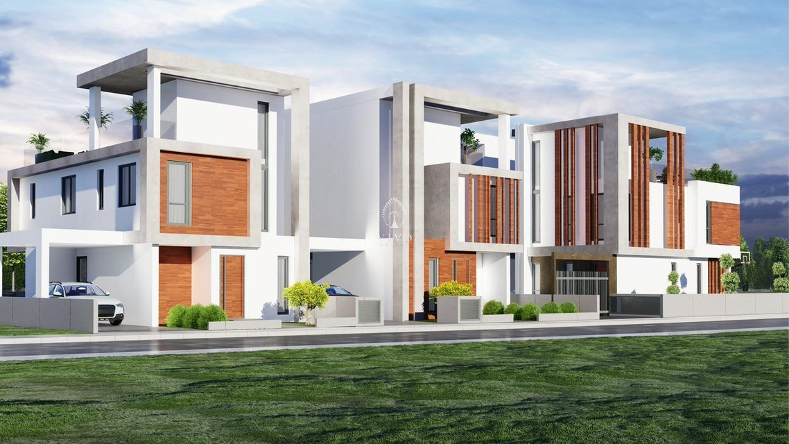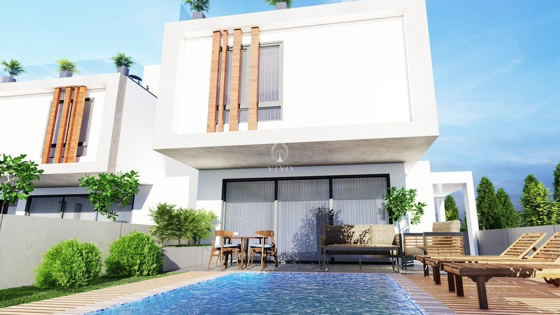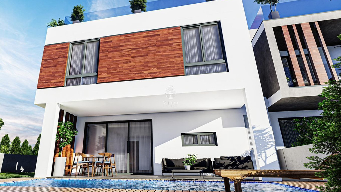 Modern three bedroom villa, located in Livadia area. Situated in a luxurious neighborhood, only 2 minutes away from the beach close to all city amenities. Has covered parking space, storage room, open plan living space, along with a large private garden and the option to have a pool but will cost extra.