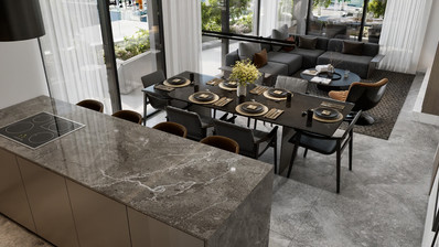 Its interior features are harmonious mix of aesthetics and practicality. Bright and stylish, based on superior quality building materials, this apartment provides a tranquil haven from the bustle of the city. In the spacious living room areas, the windows are perfectly situated, allowing the natural light to highlight all the impressive details. The gleaming kitchen countertop will inspire your inner chef.