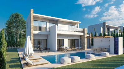 This impressive 4 bedroom residence is a modern state of the art villa in Kouklia, Paphos. The villa enjoys its own private swimming pool and spacious terrace and roof garden on a very large plot.