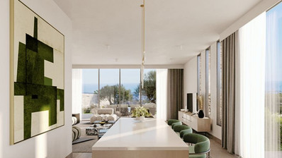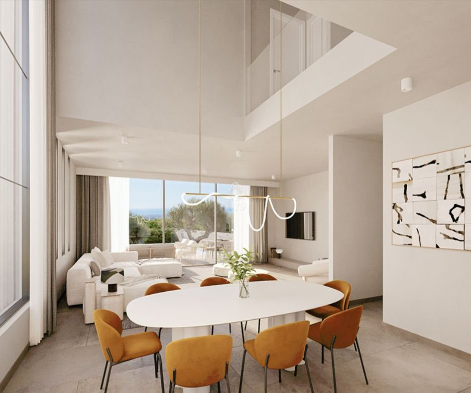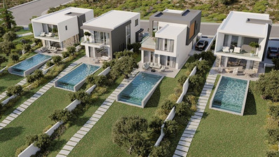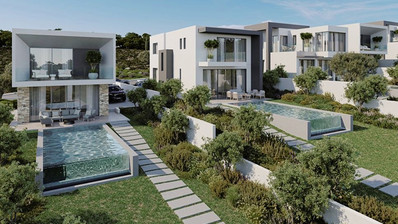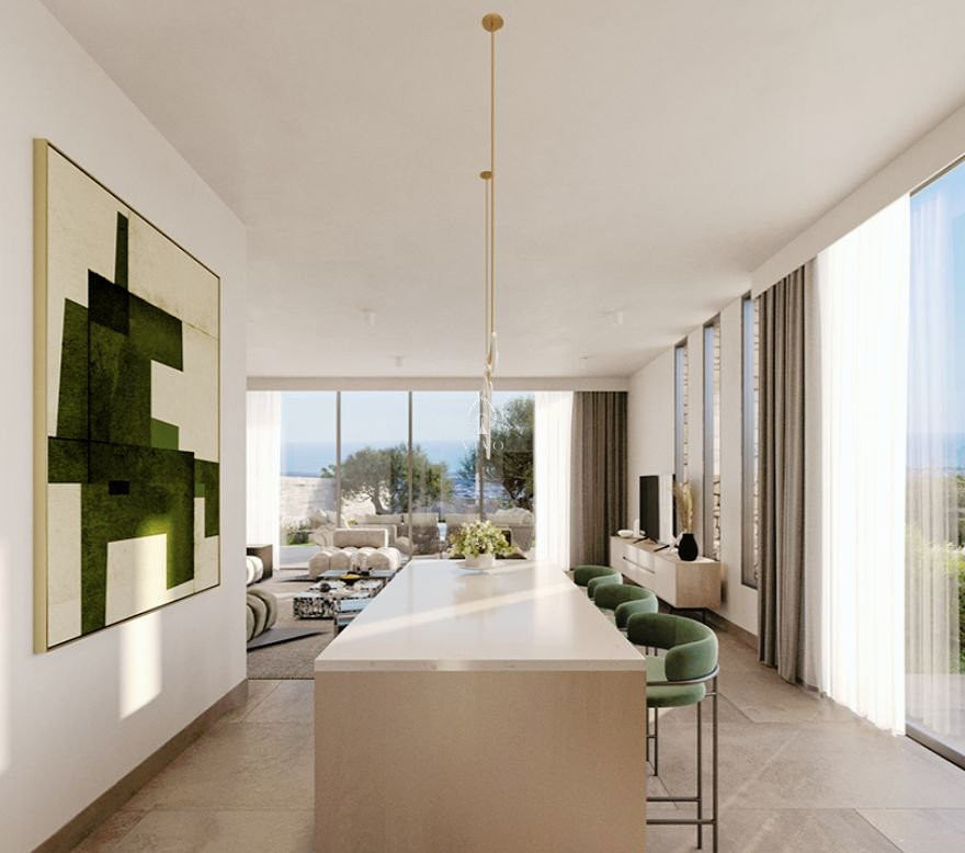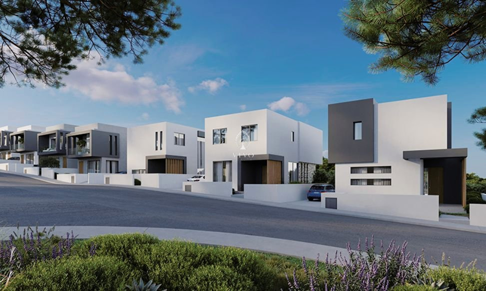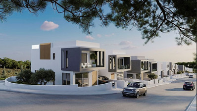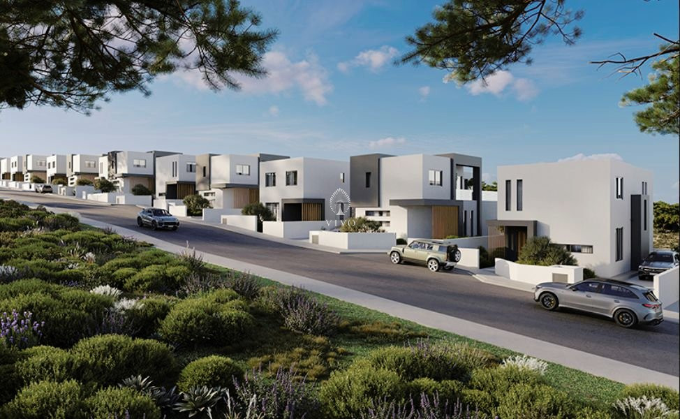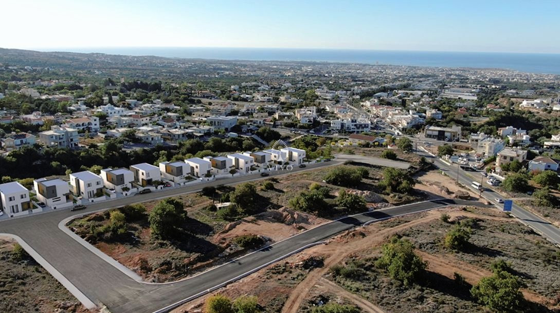 The modern architectural approach blends the project seamlessly with the natural environment, creating spacious and efficient interior areas. The location is exceptional, providing unobstructed views of Pafos and the Mediterranean Sea from every single house. The village center is only 2 minutes away, offering convenience without compromising tranquility.