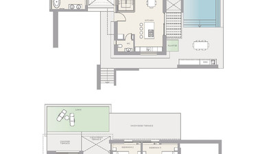 Petra is extremely spacious and light this 4 bedroom design maximises the view from every room and angle. The main level kitchen/living space flows out to the pool and BBQ area, and a glass gallery bridge leads to the wonderfully private master suite. Downstairs, guest bedrooms open on to sunny terraces.