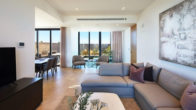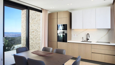 With a flowing open-plan three-bedroom layout, floor-to-ceiling windows and thoughtfully appointed courtyards, terraces and gardens - Aura provides the best of boundless living. The striking single pitched roof is typical of Cypriot vernacular, and the outdoor kitchen, stylish L-shaped seating area and plunge pool are designed for life al fresco. Open floor plans accommodate both entertaining and family life, with the perfect amount of privacy. inside, each Villa masterfully blends natural materials with the finest fixtures and technology.