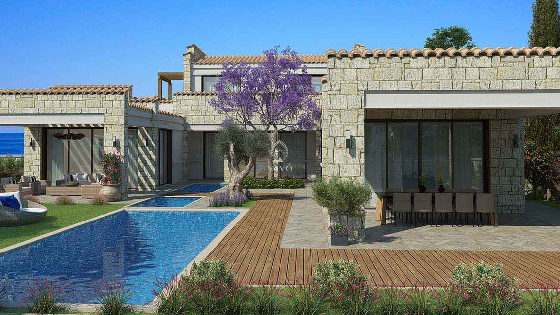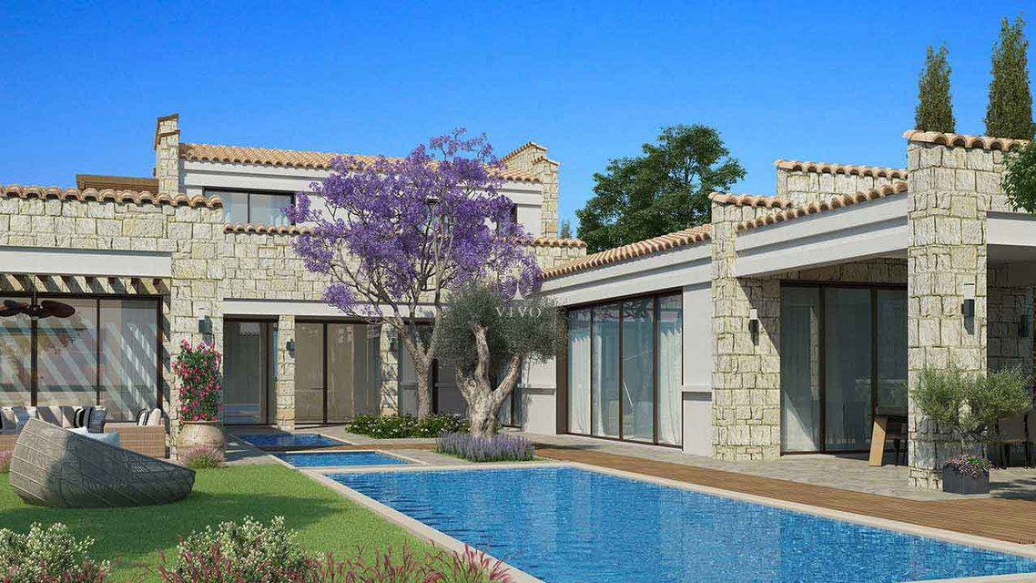 This is an exclusive 3 bedroom villa for sale located in the famous Golf Resort. The design of the villa has been inspired by a perfect fusion of contemporary and Mediterranean architecture using traditional materials such as stone, clay roof tiles, and wood in clean lines and large open spaces. The villa is designed on a large plot and enjoys a private swimming pool, spacious interiors and large terraces while having beautiful sea views of the Mediterranean.