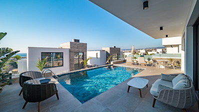 Inside, the villa is fully furnished with elegant, modern décor. Enjoy the comfort of a central AC system and underfloor heating, making this home perfect for all seasons. Step outside to your private swimming pool and take in the beautiful sea views, creating a resort-like ambiance right at home.
