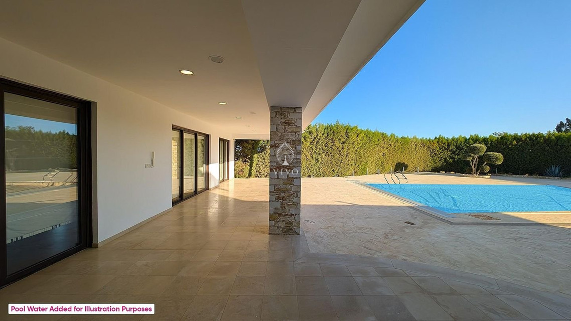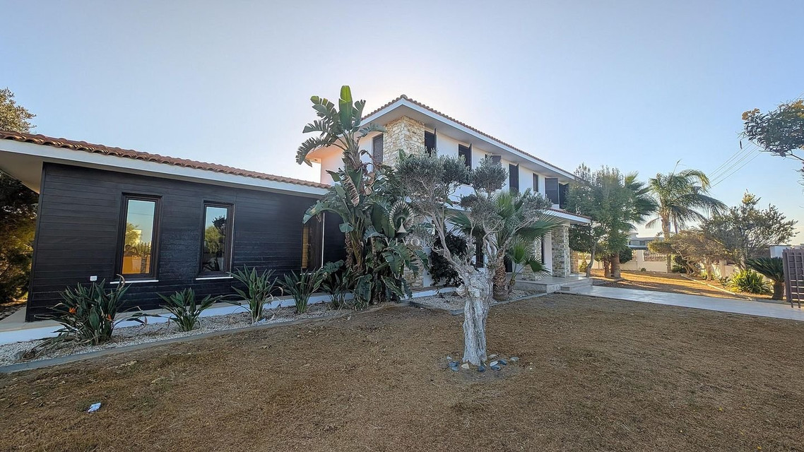 Grand 5-Bedroom Villa with Pool & Expansive Grounds in Dromolaxia–Meneou. Set within a registered corner plot of 5,376 sq.m., this impressive two-storey detached villa offers luxurious living, extensive outdoor amenities, and a prime location in Dromolaxia–Meneou Municipality. Positioned just 200m. northwest of Glafkos Klerides International Airport and 1.5km southeast of the municipal center, the property enjoys excellent accessibility while maintaining privacy and space. It boasts a 132-meter frontage along Heras Street and borders a future pedestrian walkway to the north (65 meters). Ground Floor Highlights • Elegant open plan living, dining, and sitting areas • Spacious kitchen with everyday dining space and direct outdoor access • Office/gym room, guest toilet, and laundry room • Maid’s room with en-suite shower, playroom, and storage room First Floor Layout • Five bedrooms and a family bathroom • Master suite with en-suite jacuzzi bath and walk-in closet • Two additional bedrooms with en-suite bathrooms and covered verandas Outdoor Features • Covered parking areas • 74 sq.m. swimming pool • Barbecue area and landscaped yard • Mechanical room, changing room with toilet, and extra storage. Planning Zones • Zone Δα2 (40%): 1% building coefficient, 1% coverage, 1 floor (5m) • Zone Κα6 (60%): 90% building coefficient, 50% coverage, 2 floors (10m) • Zone Γα2 (0%): 6% building coefficient, 6% coverage, 2 floors (7m) Energy Performance Certificate pending