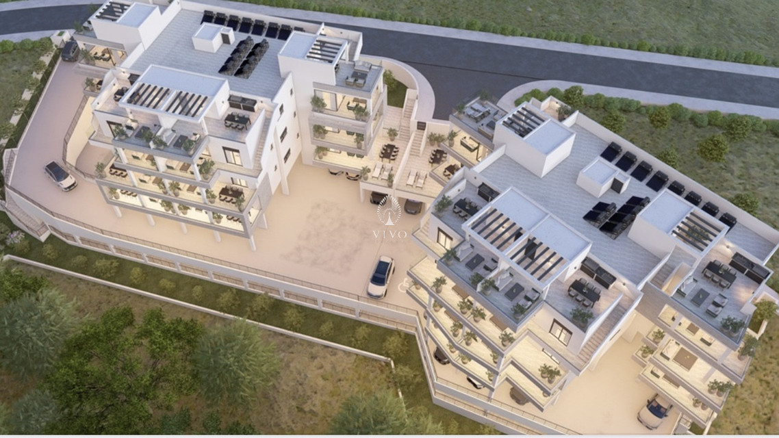 For sale: Modern two-bedroom apartment currently under construction in the desirable Panthea area. This spacious property offers an internal space of 88.4 m² , 29.6 m² covered verandas and 71.9 m²uncovered verandas plus 71.6 m² garden and is situated on the first floor of a stylish three-story building with elevator access.