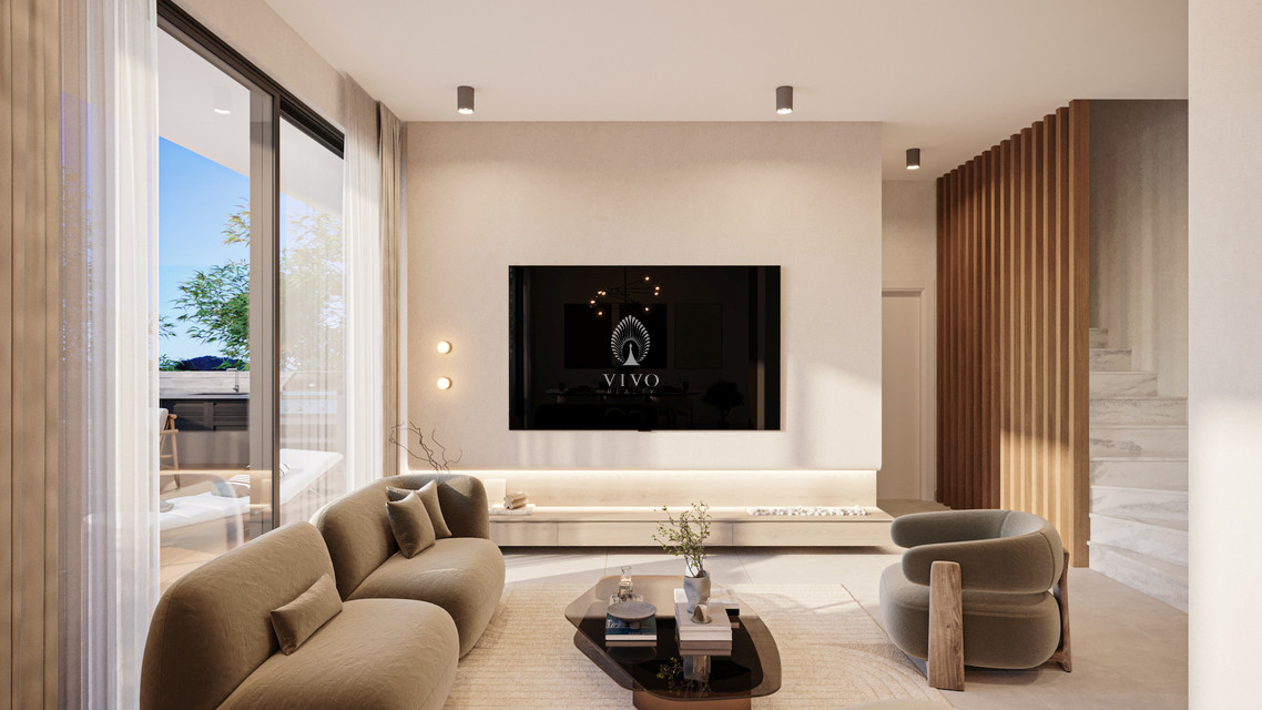 For sale is a brand-new detached villa currently under construction, offering a spacious internal area of 166.95 m². This property features four bedrooms and three bathrooms, perfect for families or those who need extra space for work or guests. The villa is designed for modern living, with a central air conditioning system and underfloor heating throughout, ensuring comfort in every season.