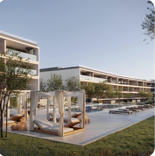 private luxury amenities shared among the residents—saunas, gym and fitness rooms, two- swimming pools, centrally designed gardens, and co-working facilities