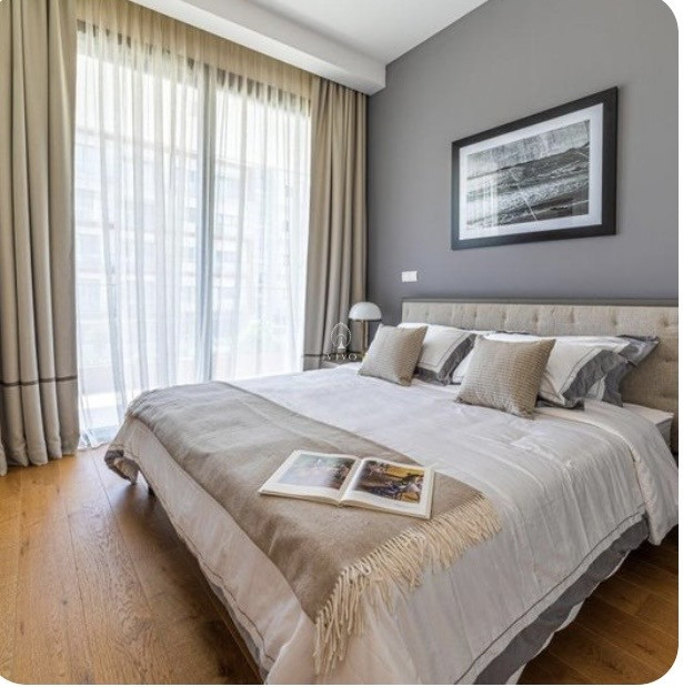 The apartment boasts panoramic views, including an inspiring sea view, perfect for unwinding after a long day. Residents have access to a communal swimming pool, a well-equipped gym, and a private Jacuzzi, creating a resort-like experience at home.