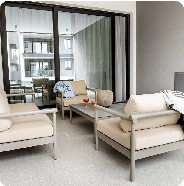Enjoy exclusive use of a communal swimming pool and gym, perfect for wellness and leisure. Large windows offer both panoramic and sea views, filling the home with natural light and coastal scenery.