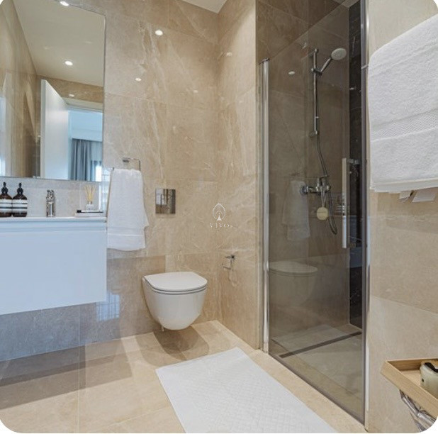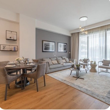 The apartment is part of a gated complex with excellent facilities. Enjoy a communal swimming pool, an on-site gym, and energy efficiency class A for low utility costs. The building and its surroundings have been planned to provide privacy, security, and a welcoming atmosphere.