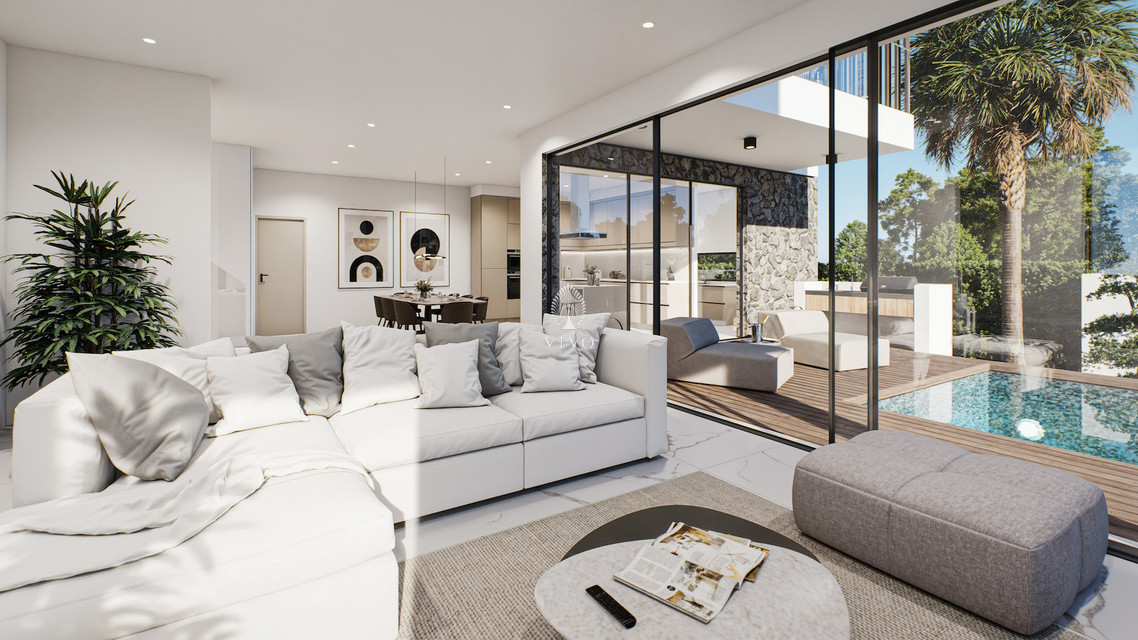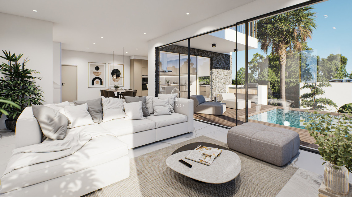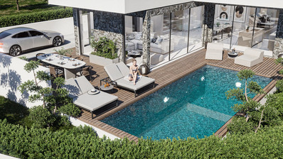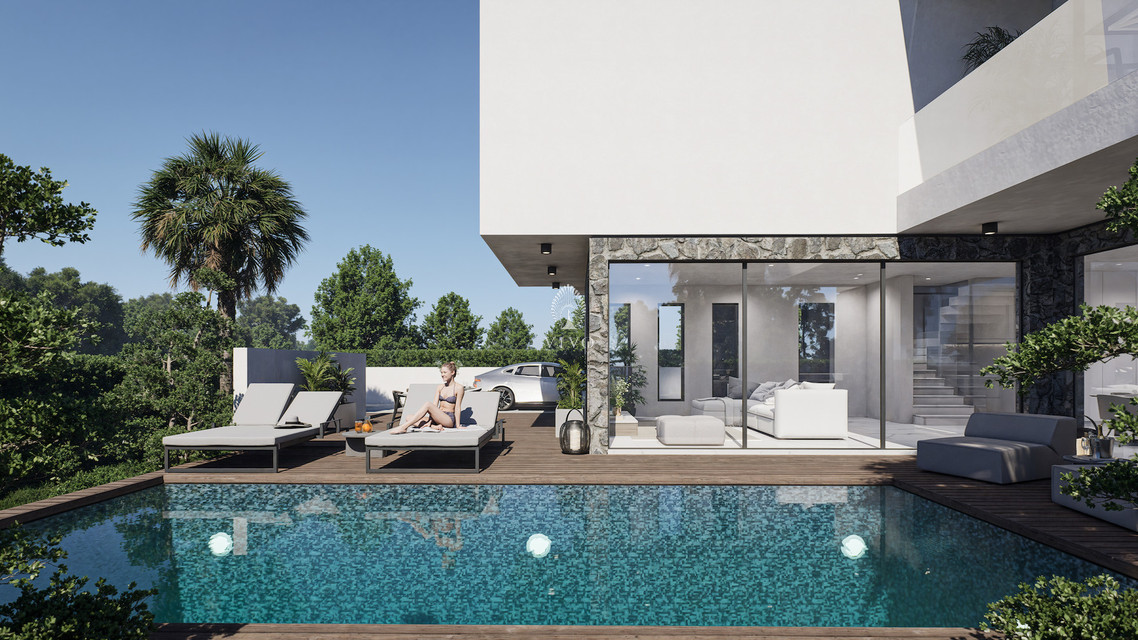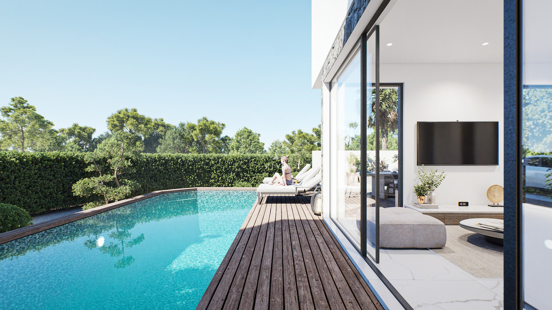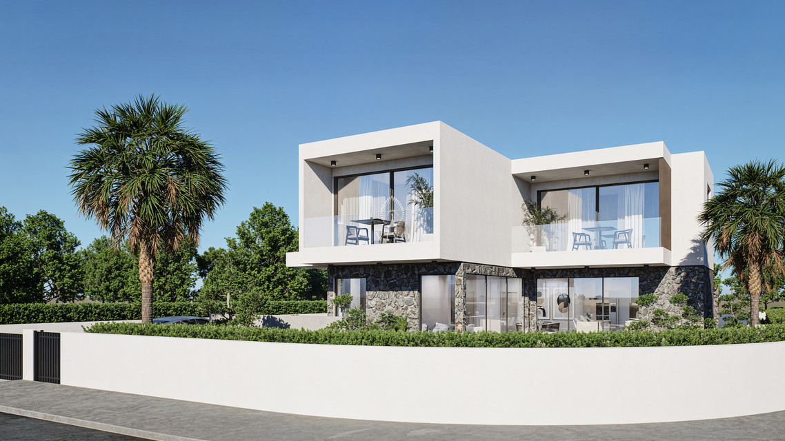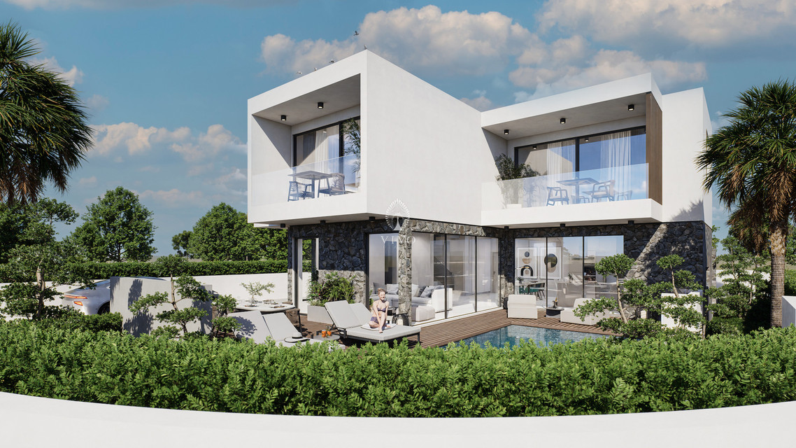 Our modern 4-bedroom and 5-bathroom villa, covering over 237sqm on a 582sqm plot, features open-plan living and luxurious bedrooms with balconies overlooking the sea.