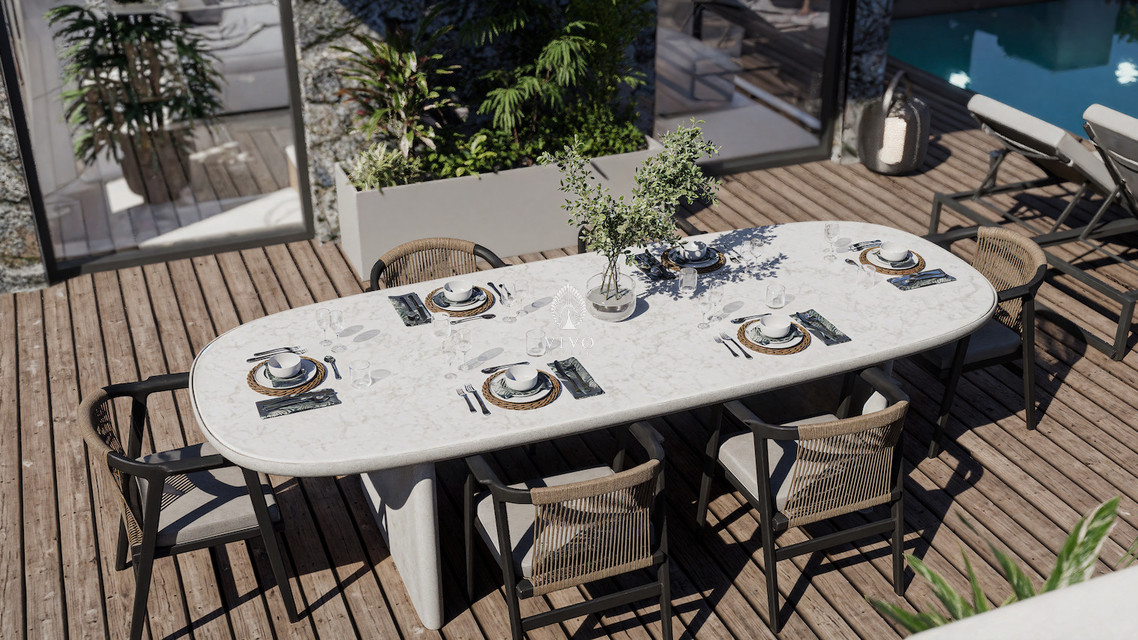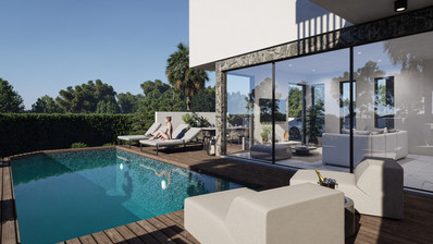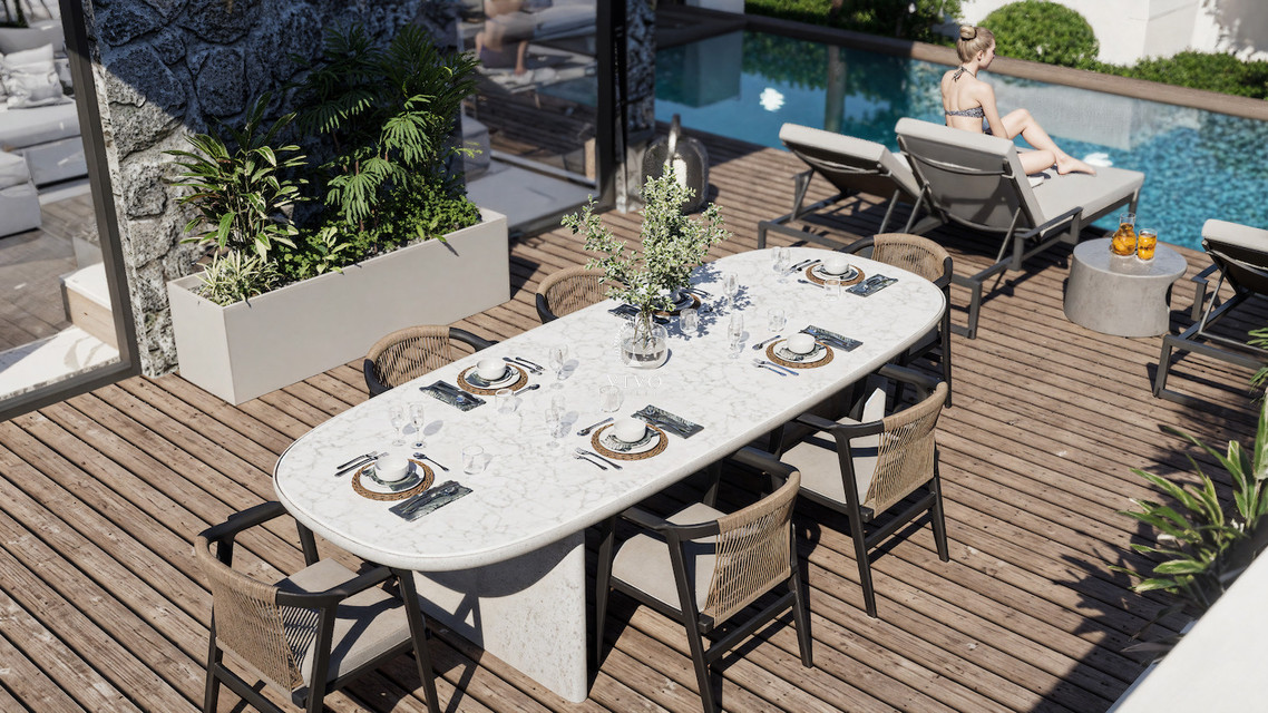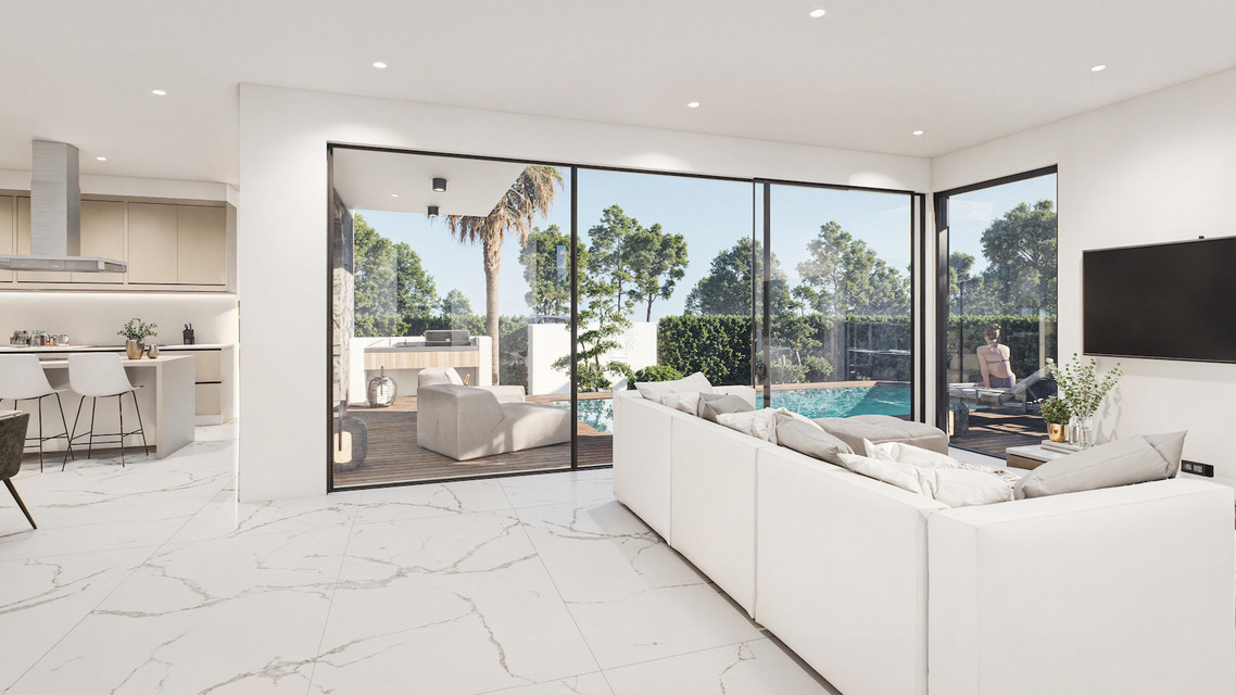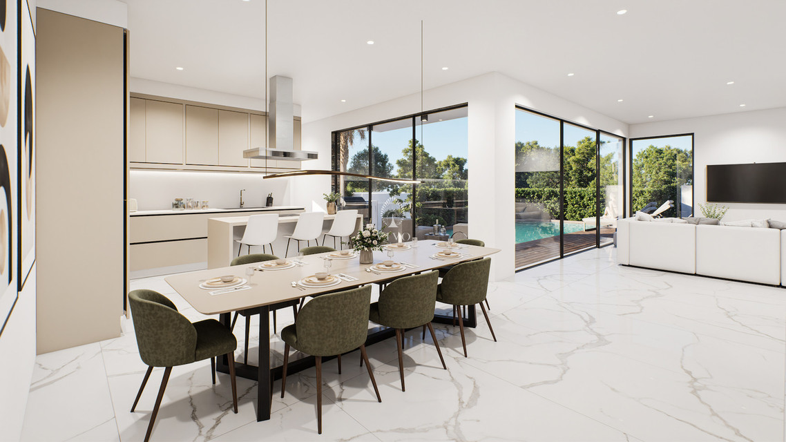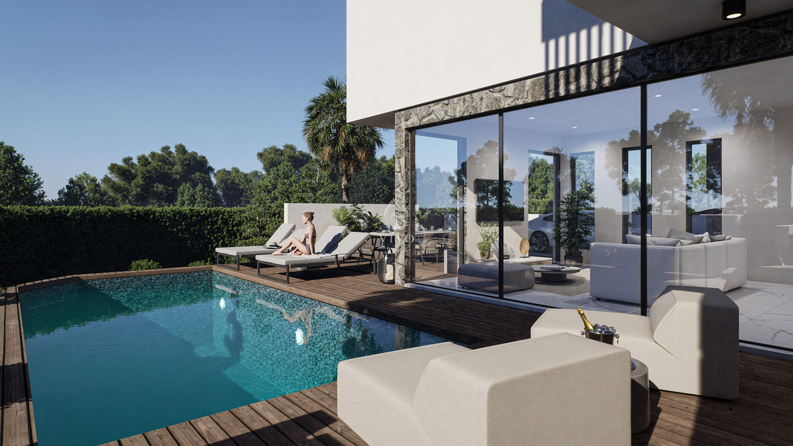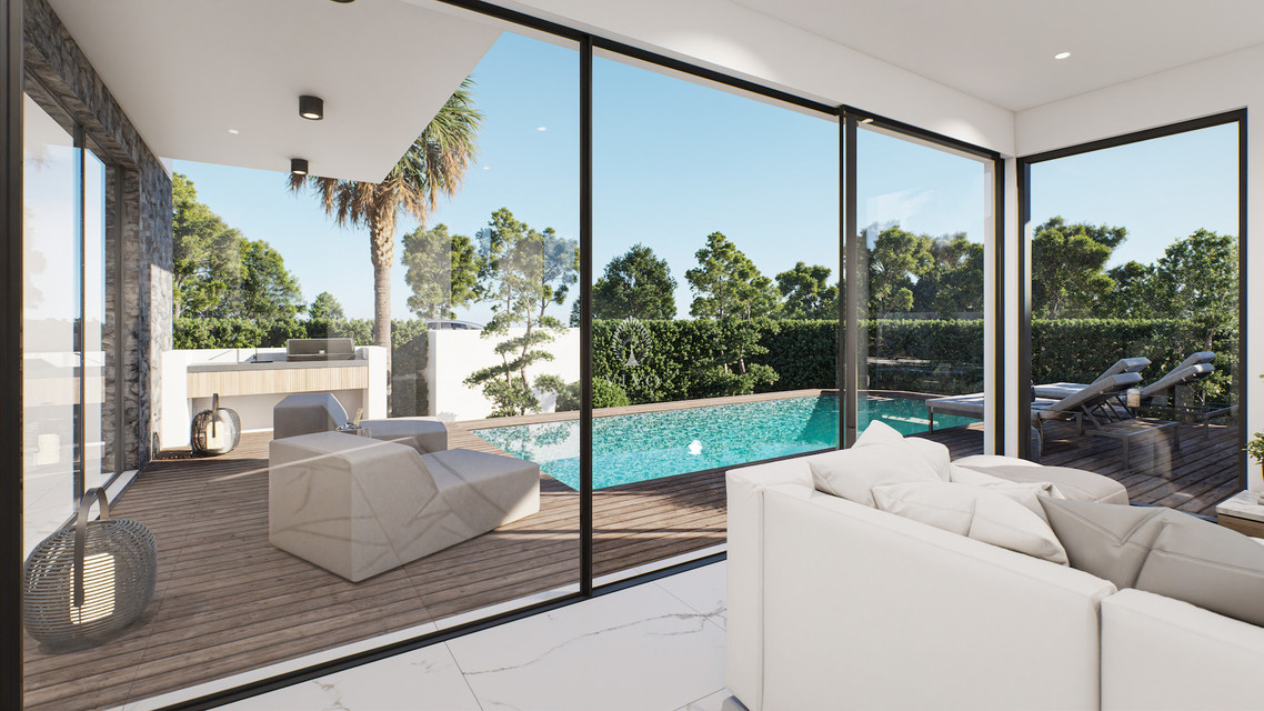 Our modern 4-bedroom and 5-bathroom villa, covering over 237sqm on a 582sqm plot, features open-plan living and luxurious bedrooms with balconies overlooking the sea.
