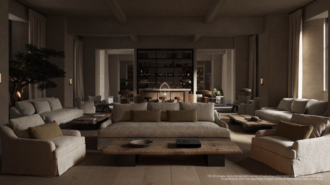 The residence offers premium living with access to top-tier hotel-style amenities. It comes fully completed with elegant parquet flooring, natural stone finishes, and high ceilings throughout. Additional features include fire-resistant entrance doors, an intercom system, underfloor water heating, and advanced VRF central air conditioning. The property is fitted with thermo-aluminum window frames with double glazing, as well as high-end European furniture and appliances.