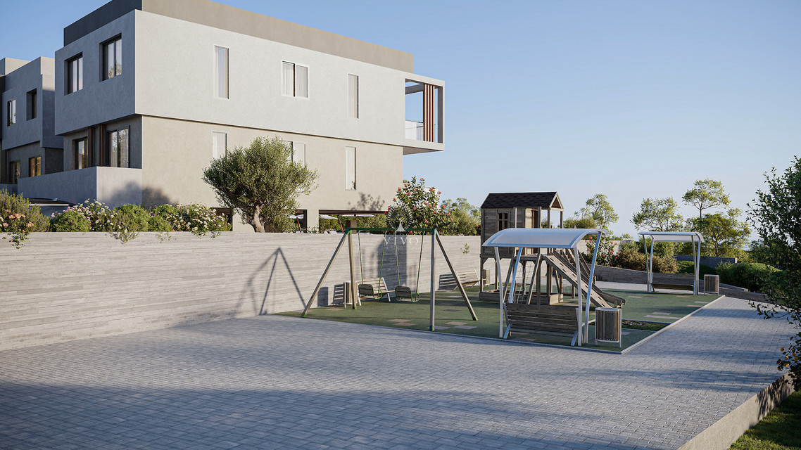 Residents enjoy an extensive range of premium facilities including overflow communal swimming pools, concierge services, indoor and outdoor gyms, BBQ and recreational areas, a children’s playground, padel and basketball courts, and dedicated storage rooms. Ideally positioned just 5 km from the city center, 10 km from the beach, and 20 km from Paphos International Airport.