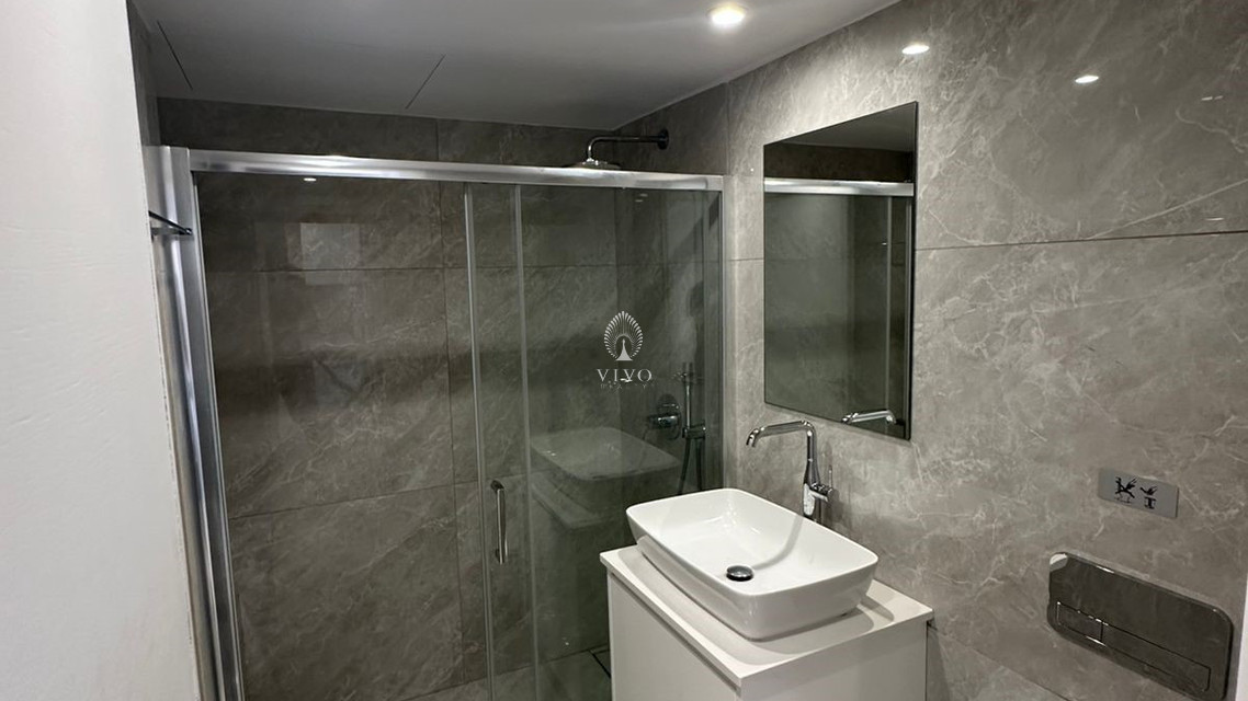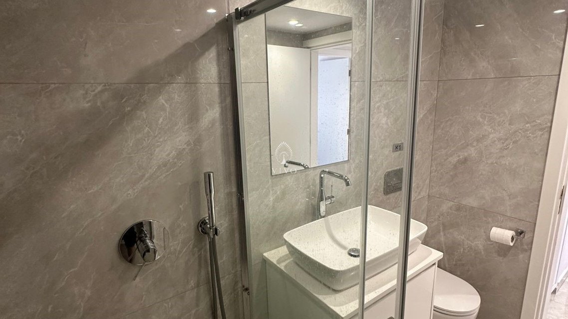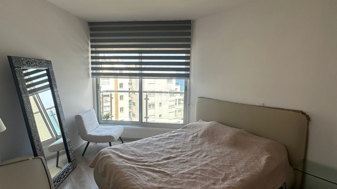 The apartment is fully furnished and includes a central air conditioning system for year-round comfort. The bright living area and contemporary kitchen create a cozy atmosphere, while large windows ensure plenty of natural light.