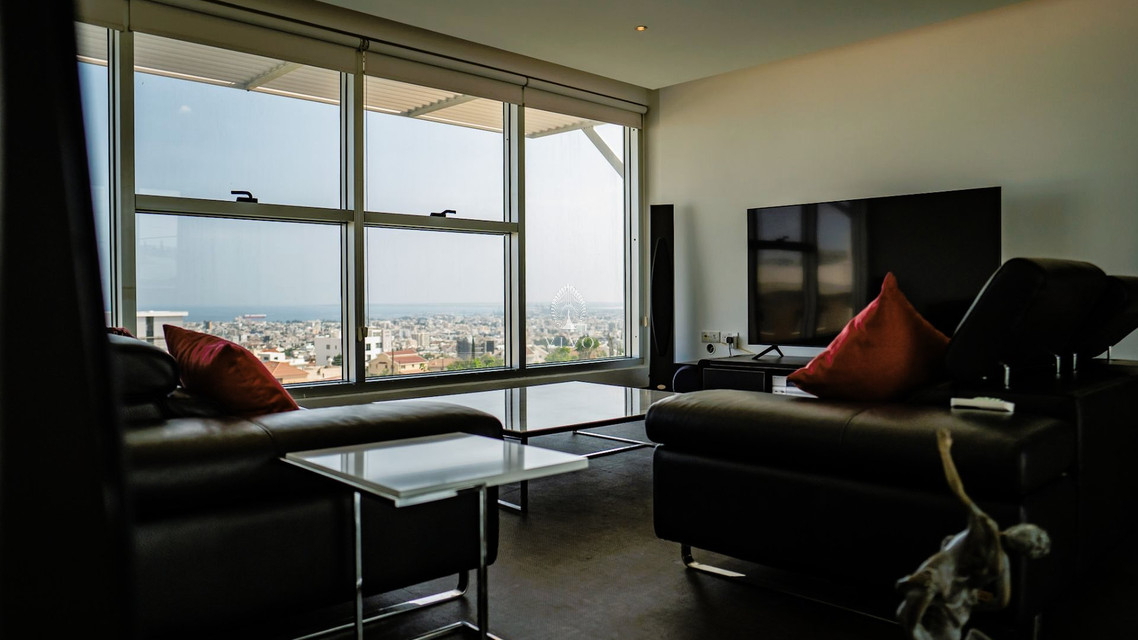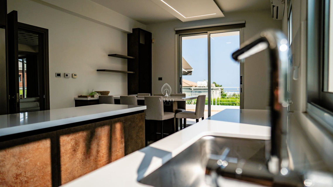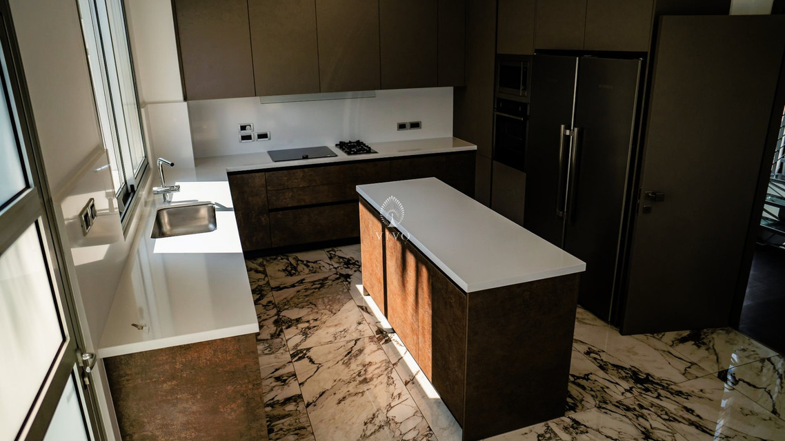 2nd floor: separate kitchen with 2 island bars. Huge open plan dining and living area and a guest w.c. and outside large terrace of 120sqm overlooking Limassol Bay.