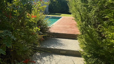 Set on a beautifully landscaped plot, the property boasts a private swimming pool, a lush garden filled with greenery and vibrant flowers, and a large BBQ area—ideal for outdoor entertaining and family gatherings.