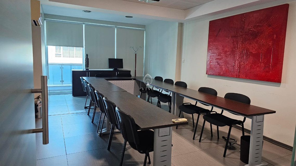 Available for rent a spacious bright office space, located at Spyrou Kyprianou avenue. This used office offers a total internal space of 95sqm, providing a comfortable environment for a range of businesses. Positioned on the first floor of a three-story building, this property also includes one underground parking space to a basement.