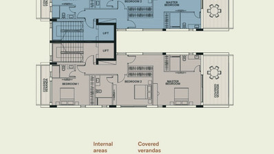 • The villa features its own private entrance foyer, providing access to both the private lift and staircase.