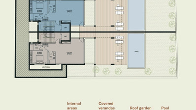• The small mechanical area allows for a spacious, flexible-use roof garden.