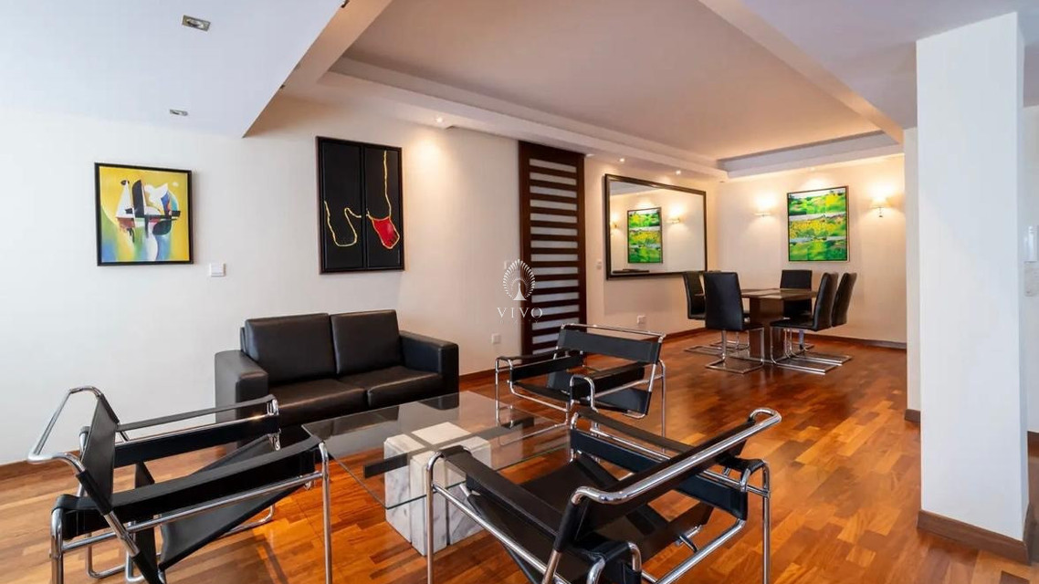The property features three large en-suite bedrooms, + a maid’s room, a bright and generous living and dining area, and a fully equipped modern kitchen. Additional benefits include covered parking, a storage room, full air conditioning, double-glazed windows, and high-quality wood and marble finishes. The building entrance and elevator have been recently renovated.