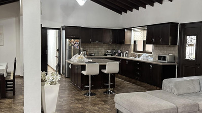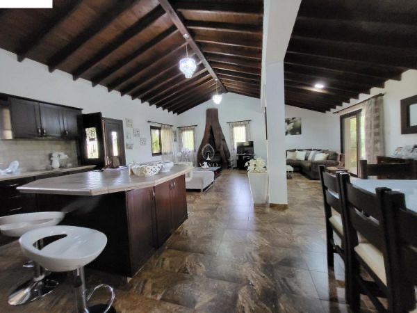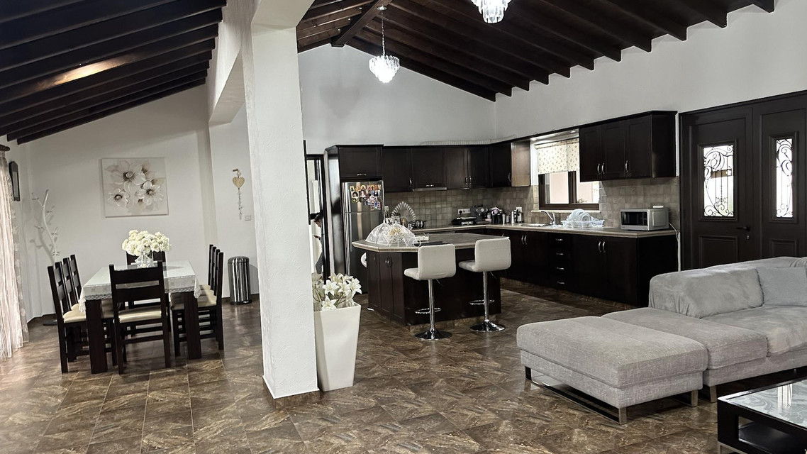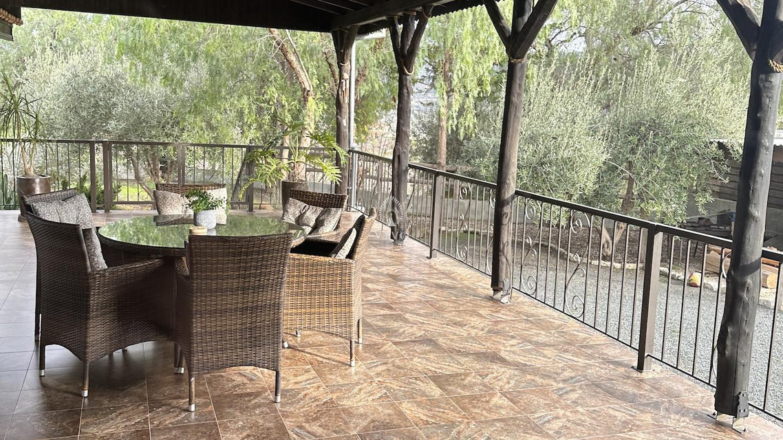 This charming 4-bedroom bungalow is set on a generous 1,040 sqm plot, offering peaceful country living only 12 minutes from Heritage School. The home features a bright open-plan kitchen, living, and dining area with a cozy fireplace, creating a welcoming space for family living.