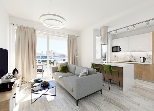 Open plan living area with kitchen with access to the main balcony of 18,4 sqm with external sliding doors making it very bright with natural light