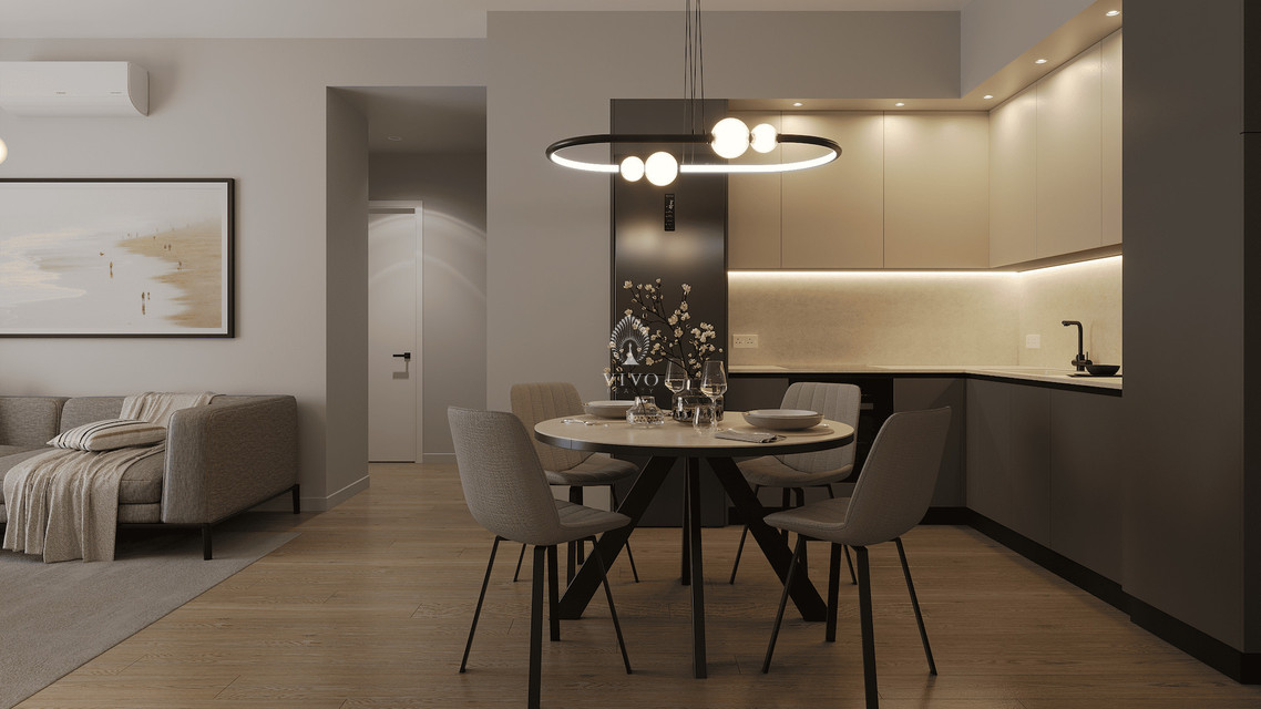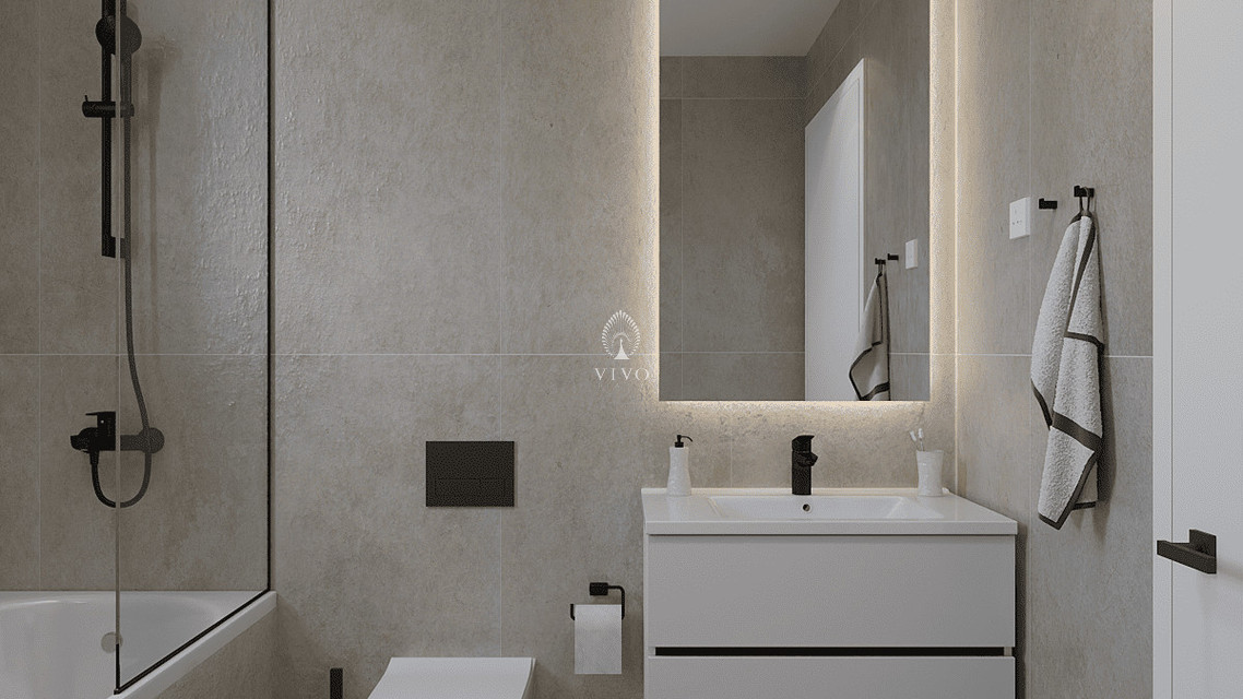 Modern design, Near bus route, Near amenities, Double glazing, Open plan, Pressurized water system, Bright, Balcony, Connected to electric mains, Combined kitchen and dining area, Easy access to main roads, Easy access to highway, Thermal insulation, Energy efficient doors/windows